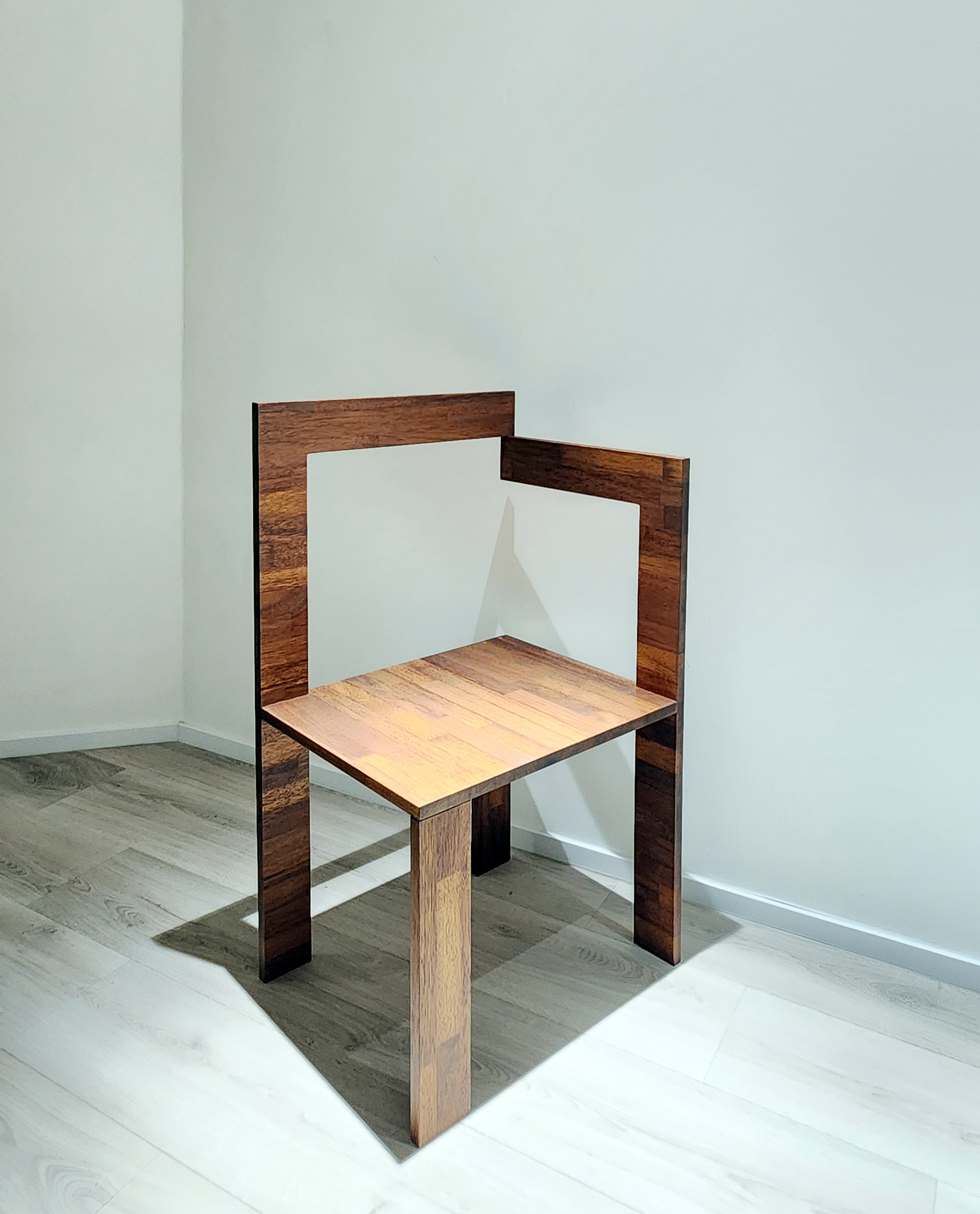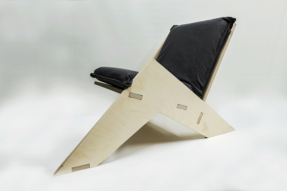 최성호 건축사의 ‘Manim Chair’는 프레임과 쿠션의 조화를 통해 인간 내면의 아름다움과 외형적 형태 간의 조화를 구현하며 철학적 메시지를 전달한다. 목재 프레임은 인체를, 쿠션은 의복을 상징하며 이를 통합된 예술적 오브제로 구현했다. 자작나무 합판으로 제작된 미니멀한 프레임과 세 지점으로 구성된 안정적인 지지 구조는 실용성과 안정성을 보장하며, 비대칭적 디자인을 통해 시각적으로 역동적인 느낌을 제공한다. 더불어 비대칭의 미학은 단순한 시각적 흥미를 넘어 예측 불가능한 역동성으로 감상자에게 새로운 경험을 선사한다. 날카로운 외형에도 불구하고 편안한 착석감으로 외관과 실용성 간의 균형을 이룬다.