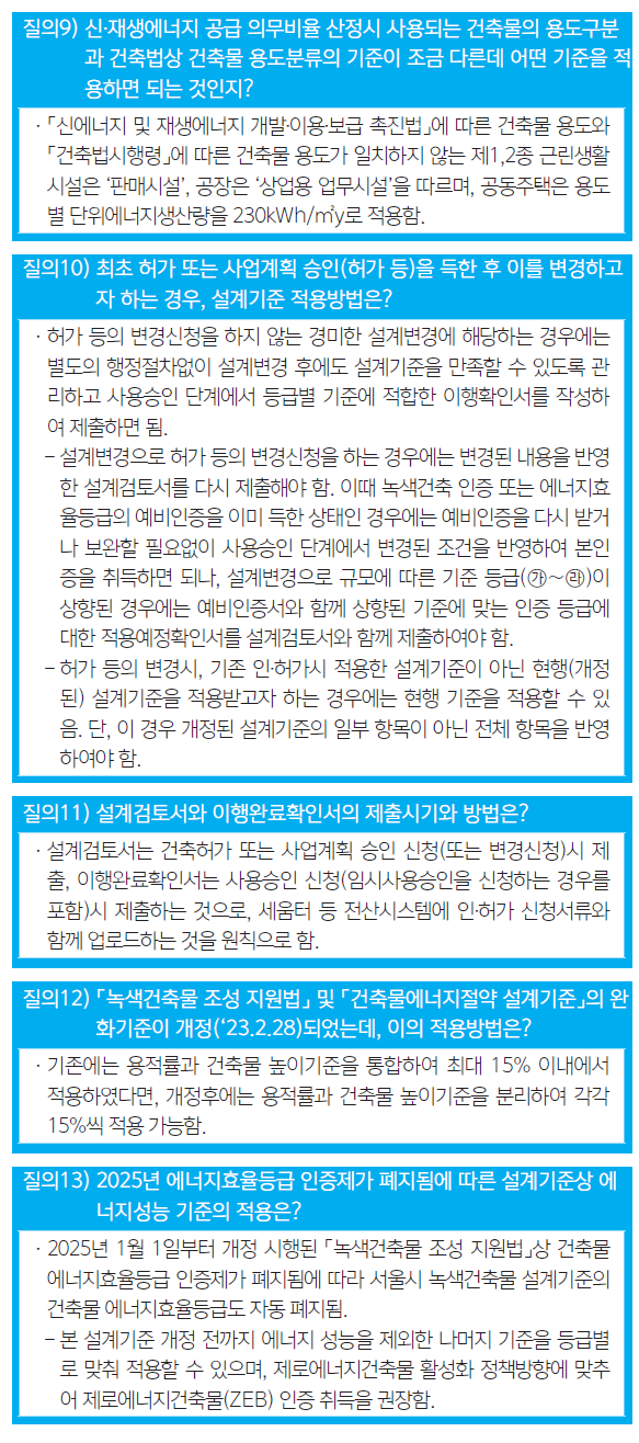 ☞ 서울시 녹색건축물 설계기준 질의응답중 발췌(2025.1월)