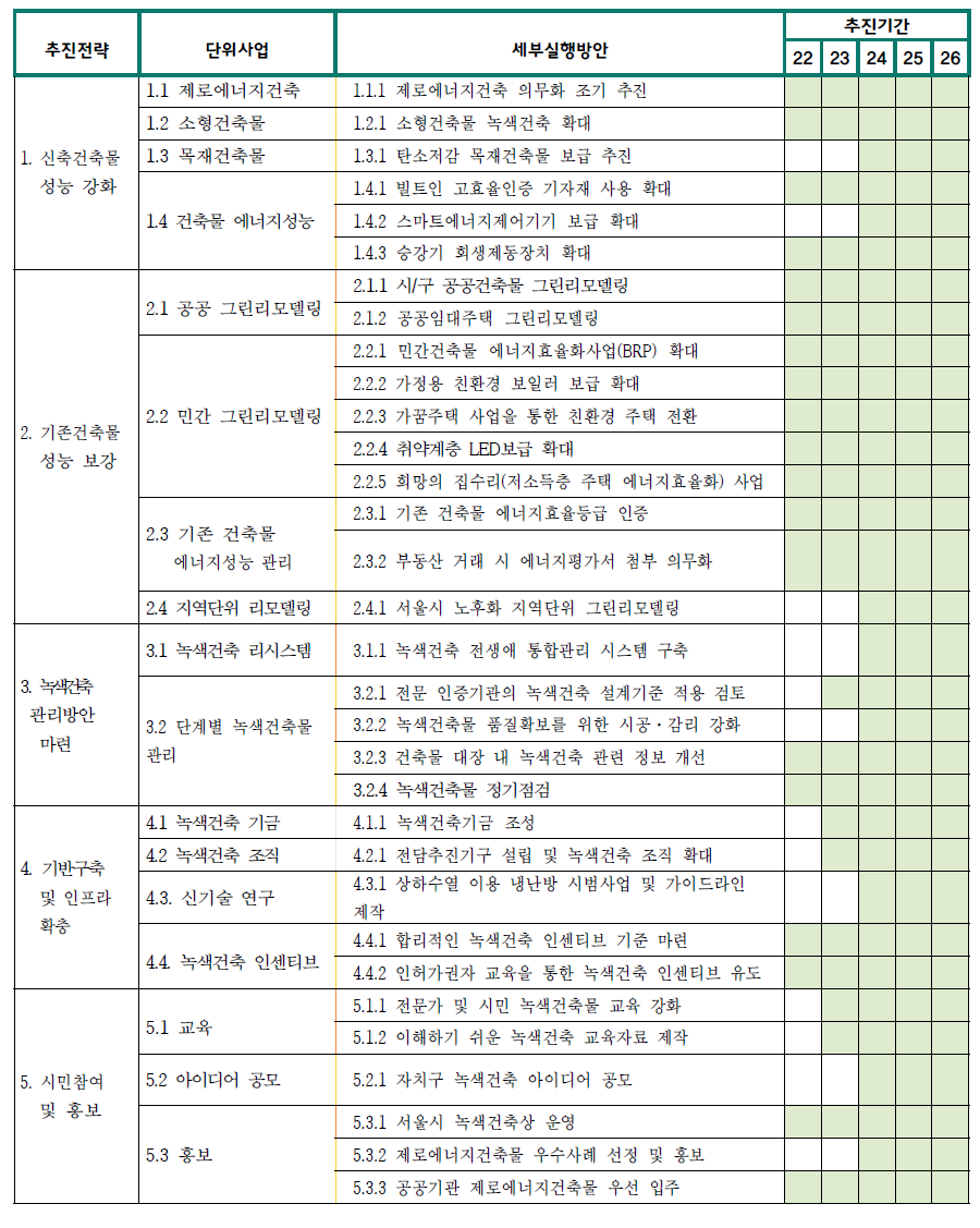 서울 시민의 주거환경 및 삶의 질 개선을 통한 건강 증진과 건축물 에너지·온실가스 수요 감축을 통한 녹색건축물 조성