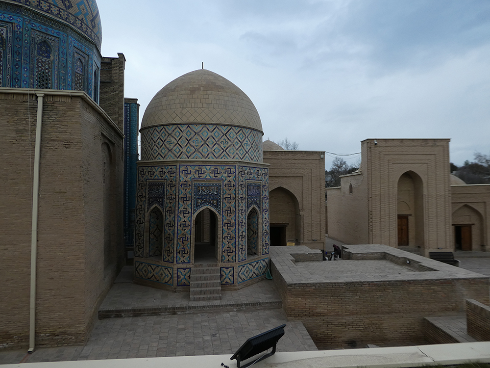 사마르칸트에서 지내는 동안 아프로시압 박물관 현장뿐만 아니라 이 연재물에 언급하는 유적지들이 대부분 최대 30분 이내 정도의 도보 거리에 있도록 숙소를 잡았다. 공사 막바지에는 거의 매일 똑같은 일과를 반복했다. 새벽에 나갔다가 아침 겸 점심 식사를 위해 호텔에 왔다가 다시 가서는 저녁에 퇴근하는 일상이었다. 한참 지난 후에는 한 직원이 가끔 호텔까지 걸어가는 거리의 반 정도인 1킬로미터 정도를 차로 데려다주었다. 하즈라트 히즈르 모스크 못 미쳐 대규모 묘지 입구 바리케이드 있는 곳까지인데, 그 이상은 차량 운행이 안되는 보행 전용로라서 거기서부터 숙소까지는 1킬로미터 정도만 걸으면 된다. 그런 날은 왕복 20~30분 여유가 생겨서 그동안 지나다니면서도 들어가지 못했던 곳에 올라가 보기도 하고 사진도 찍고 했다. 때로는 정전이 오래 지속되어 조금 일찍 퇴근하면서 샤히진다 영묘군을 잠시 들르기도 했다. 하루에 삼십 분씩만 방문해도 여러 곳을 상당히 자세히 볼 수 있다. 그 덕에 여기 언급하는 영묘군은 매일 조금씩 보고 또 보고 했다. 모든 건축공간 방문이 그렇듯이 첫 방문 당시 찍은 사진과 나중 방문 시 찍은 사진을 비교해 보면 공간이나 건축물에 대한 이해도가 무척 차이 나는 것을 알 수 있다.