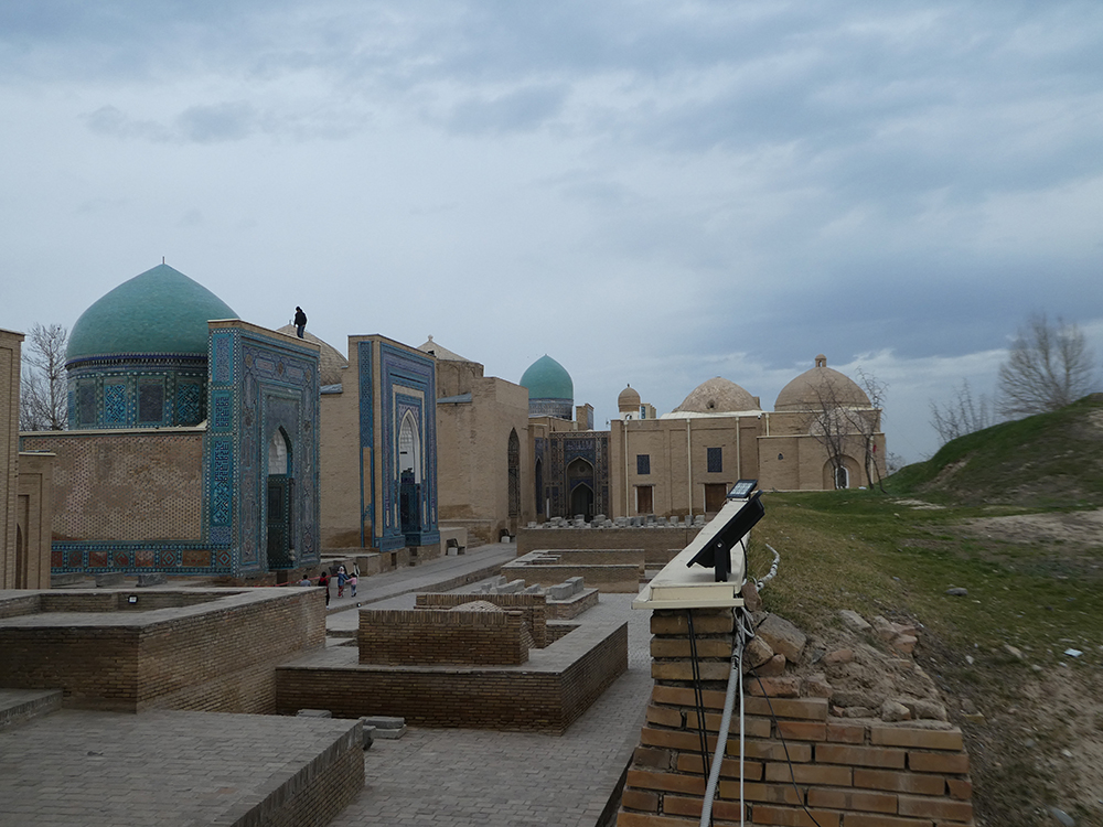 사마르칸트를 여행하면서 샤히진다 영묘 군을 방문하지 않는 방문객은 아주 드물겠지만, 같은 곳을 여러 번 가보는 방문객도 많지는 않을 것이다. 앞에서도 언급했듯이 다행히 근처에 숙소가 있어서 여러 번 가볼 수 있는 행운을 누렸다. 같은 장소를 여러 번 반복해서 방문하면 매번 새로운 것이 보인다. 정문을 통해 들어가서 끝까지 가보기도 하고, 때로는 건물 하나하나 자세히 보기도 하고. 또 어떨 때는 아프로시압 무덤군의 언덕을 통째로 넘어서 이쪽 저쪽 반대 방향에서 보기도 한다.