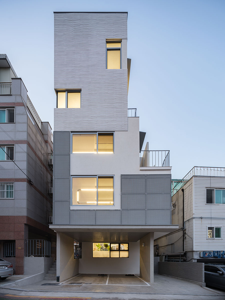그레이팅은 빼곡한 그리드 패턴이 반복되는 형상으로, 각도에 따라 면(surface)으로 인식되며 건물의 매스감을 효과적으로 표현하는 수단이 된다. 또한 시각적 연속성을 유지하면서 외부로부터 유해한 요소를 적절히 차단해 거주공간에 생동감을 준다.