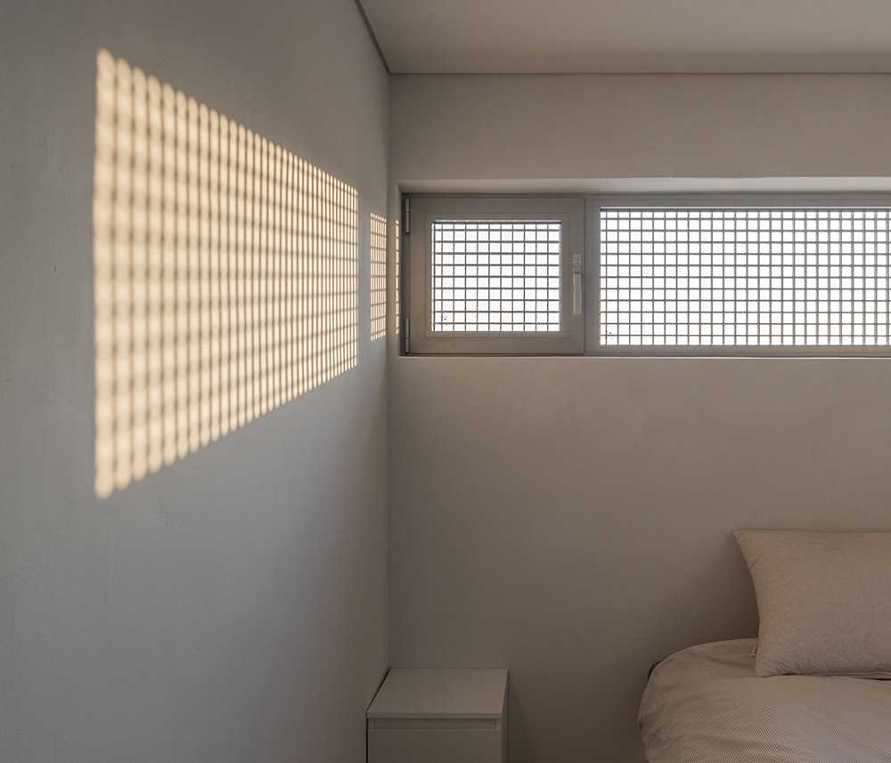 그레이팅을 통과하면서 한층 부드러워진 빛은 시간마다 패턴을 달리하며 하얀색 벽체에 조금씩 다른 점묘화를 그려낸다. 조그만 사각형 모양의 패턴 하나하나가 마치 나비가 되어 움직이는 듯한 착각을 불러온다. 그리고 천장에서 떨어지는 빛과 어우러져 이동하는 공간마다 다양한 시퀀스를 만들어낸다.