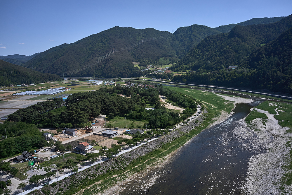 대지는 북의 백석봉과 남의 민둔산, 서의 가리왕산과 동의 남산으로 둘러싸여 있으며, 둥글게 감싸 흐르는 오대천 남쪽의 넓은 평야 마을, 남평리(南坪里) 끝자락에 위치하고 있다. 북에서 흘러내려오는 구절천과 동에서 흘러 들어오는 골지천이 합류하는 아우라지 나루터에서부터 다시금 30리(11,782m)를 따라 내려오면 오대천과 합류한다. 그렇게 만난 하천이 비로소 강의 이름을 얻어 조양강으로 바뀐다. 그렇게 하천이 굽이쳐 호를 그리며 만나 어우러지는 곳에 넓은 평야가 펼쳐지고 남평(南坪)이라는 지명으로 불려왔다. 이렇게 사방이 트여 있어 어느 방향으로 앉아도 시선의 모든 풍경이 자연과 함께 어우러져 아쉬울 게 없다.
