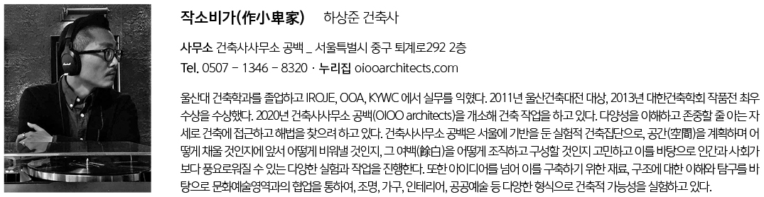 이 작은 집을 준공할 즈음 건축주 부부는 이름을 지어줄 것을 요청했다. ‘作小卑家(작소비가)’ 단어 그대로 직역하면, 작고 낮게 지은 집. 작아서 소중하고, 비울 수 있어서 가치가 있다는 의미이다.