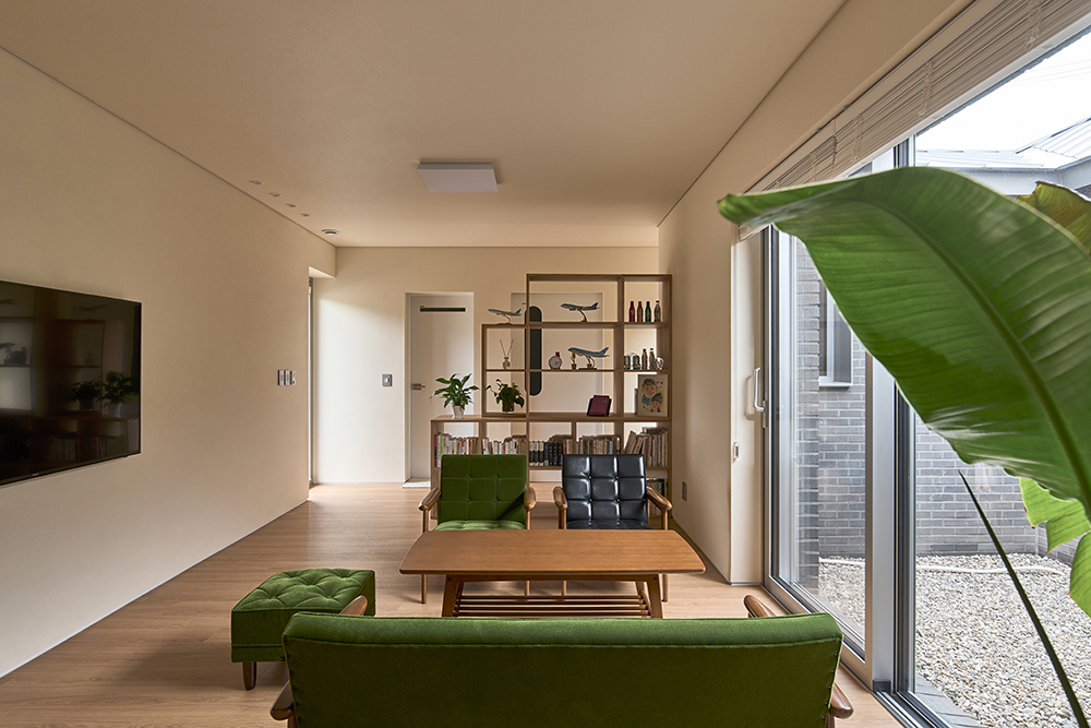 Traditional Korean houses are structured as a collection of rooms. The terms “Han-kan (single-room) house” or “99-kan house” refer to the assembly of rooms, rather than Western-style houses where spaces are designated by function, such as a living room, bedroom, study, or bathroom. In contrast, Korean houses are defined by their placement, not function—rooms are referred to as anbang (main room), geonneonbang (opposite room), or munganbang (gate-side room) rather than by a fixed purpose. In these rooms, a futon can turn the space into a bedroom, a dining table makes it a dining area, a desk transforms it into a study, and a sofa and bed define it as a living space. This sequence of undefined ‘empty’ rooms allows flexibility based on the user’s intent.