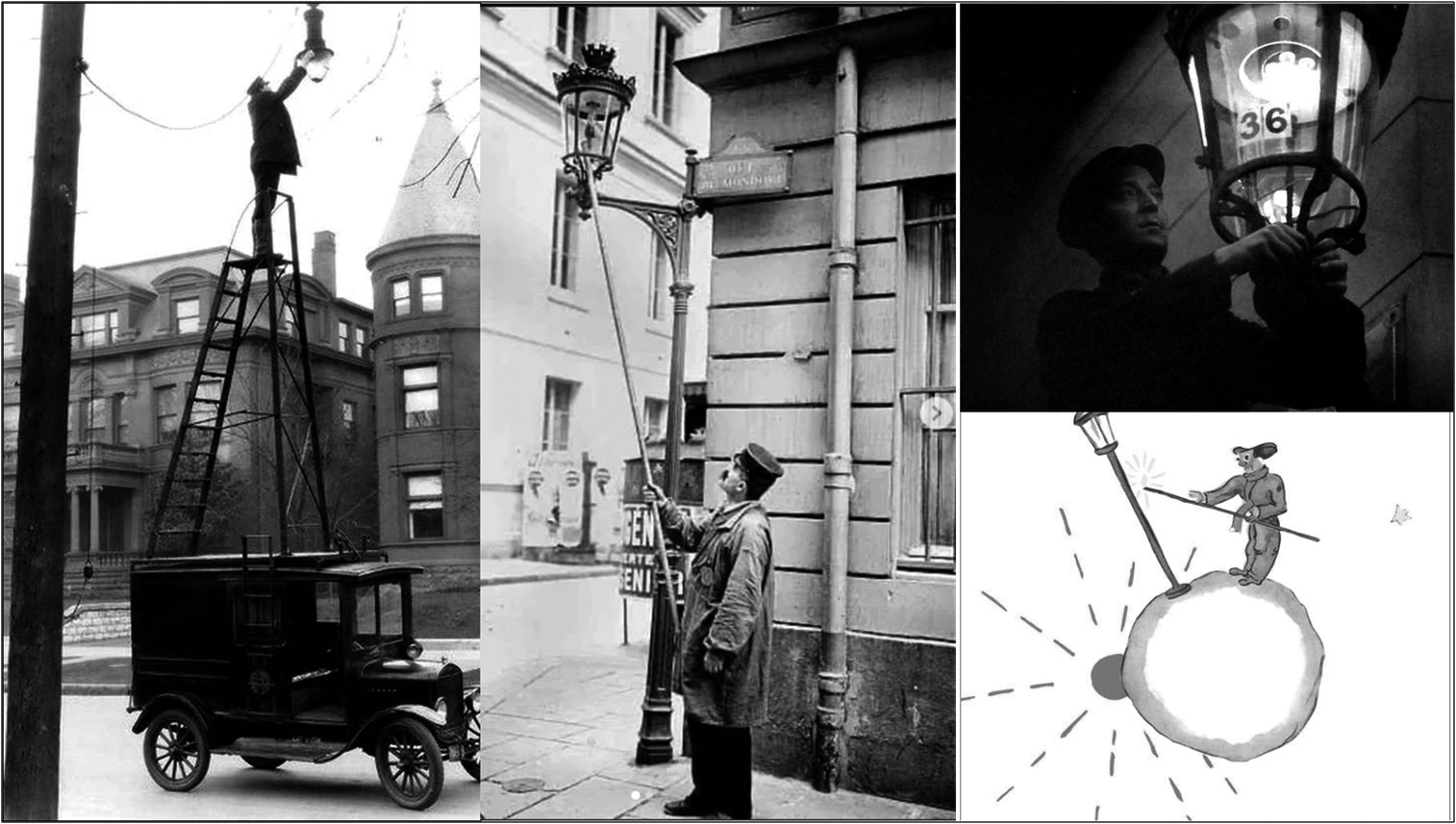 가로등 켜는 직업의 역사는 제법 오래야. 1667년, 프랑스 정부가 어느 길 양 끝에 기름으로 밝히는 가로등을 설치하면서 파리에는 등불 켜는 사람이 등장했어. 영국 런던에서는 1807년 1월 28일 가스를 사용하는 공공 가로등이 팔몰(Pall Mall) 거리에서 시범 운영되었지. 19세기 말에서 20세기 초에 전기 가로등이 대중화되자 가로등 점등인이라는 직업은 쇠퇴하여 지금은 거의 사라졌어. 하지만 전통의 보존과 관광을 위해, 영국이나 유럽의 몇몇 도시에는 점등인이 여전히 남아있대.