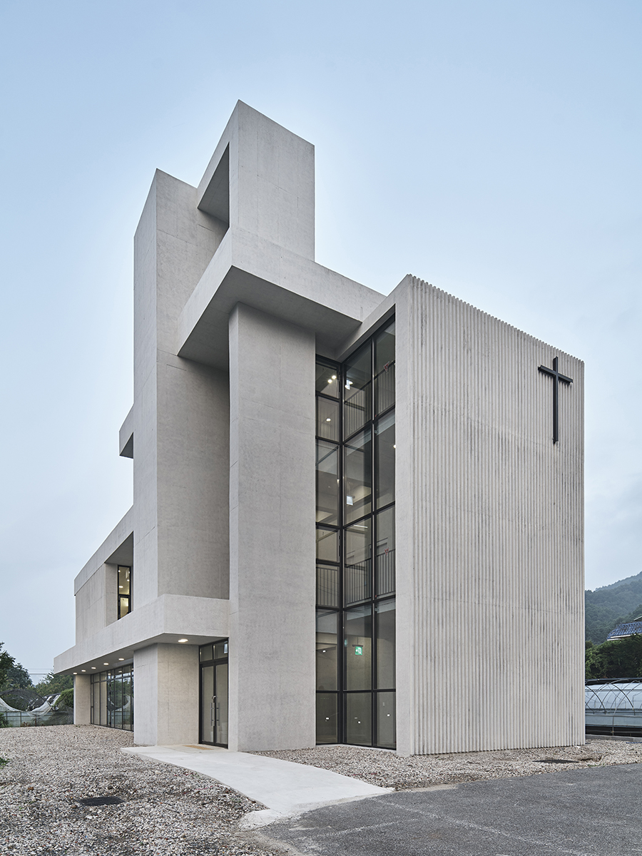 Birye Church Architect | Lim, Seung Mo _ SML Client | Birye Church Supervisor | Oh, Ilseok Construction | Juseong E&C Project team | Kim, Jiyoon Design intention realization | SML Location | Golmal-gil, Chubu-myeon, Geumsan-gun, Chungcheongnam-do, Korea Program | Religious facilities, Detached house Site area | 1,137.00㎡ Building area | 302.65㎡ Gross floor area | 664.57㎡ Building to land ratio | 26.62% Floor area ratio | 58.45% Building scope | 3F Structure | RC Exterior finishing | Exposed concrete, Corrugated concrete Interior finishing | Exposed concrete, Paint Design period | Apr. 2023 – Aug. 2023 Construction period | Sep. 2023 – Sep. 2024 Photograph | Lee, Namsun Structural engineer | Todam Partners Mechanical·Electrical·Fire engineer | Joeun Engineering |