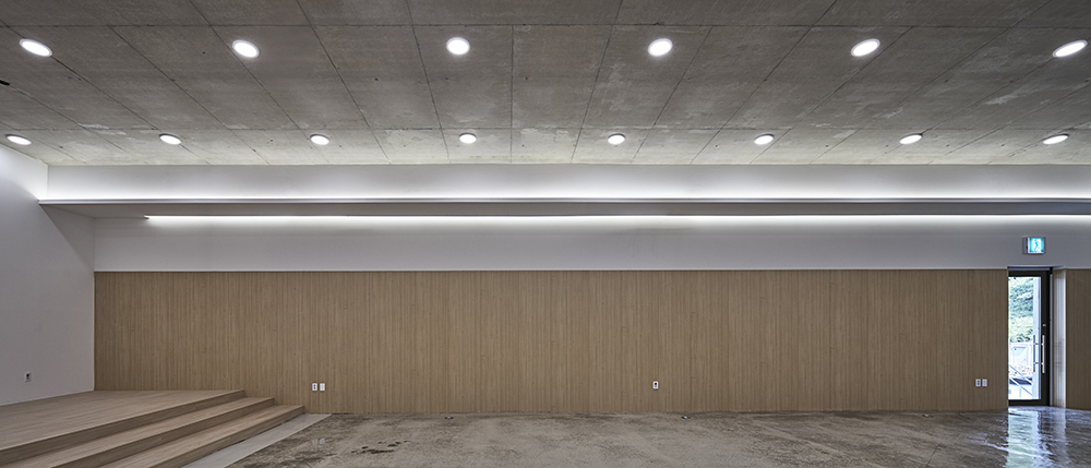 The new church is composed of three stacked concrete slabs, supported by thick walls and columns. Each of the three distinct programs—education center on the first floor, sanctuary on the second, and parsonage on the third—is placed beneath these slabs. Their spatial relationships to the outdoors are carefully mediated through orientation, openness, and controlled views. Horizontally layered, the massing harmonizes with the flow of the surrounding mountain ridges and the tranquil expanse of rice paddies. The interplay of light and shadow on the concrete surfaces continually reshapes the perception of form throughout the day.