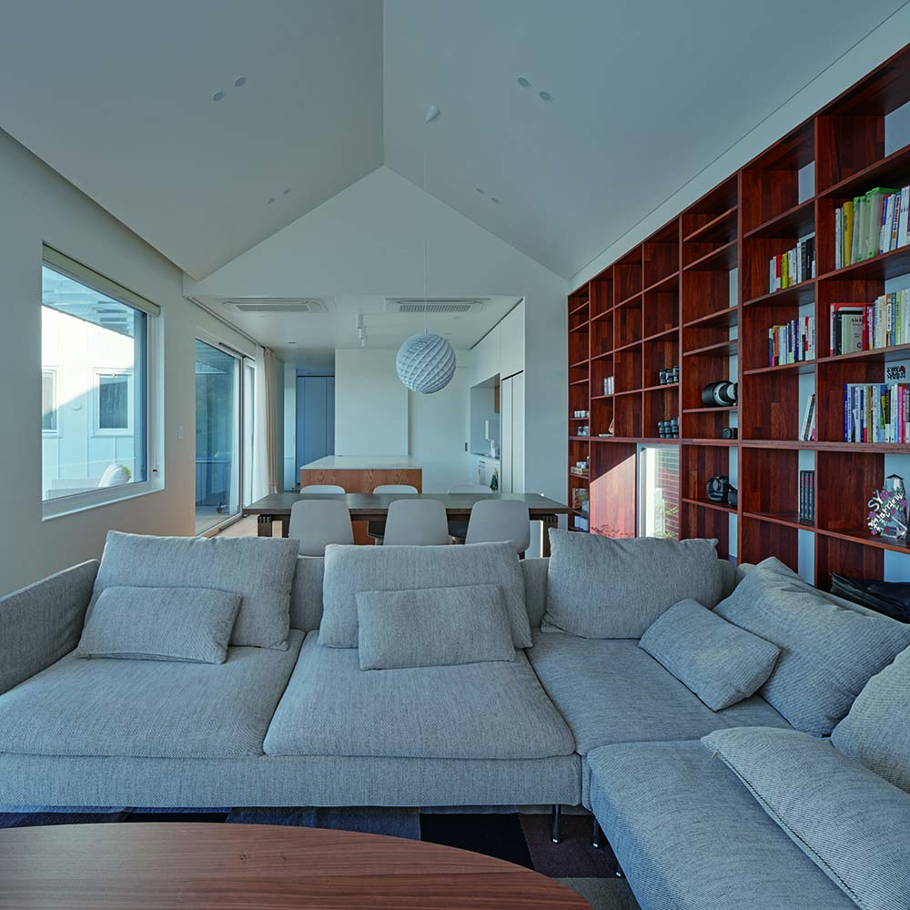 The rear courtyard and hobby room serve not as secondary spaces, but as organic connectors between public and private zones. While the common and private areas are clearly defined, these mediating spaces allow for fluid transitions and flexible interactions. A southern overhang and energy-efficient systems enhance indoor comfort, while materials such as merbau wood bookshelves add warmth and texture to the interior.