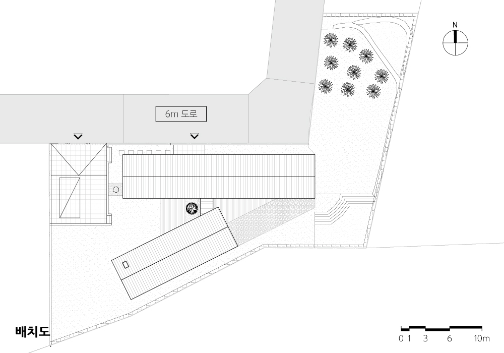 연서헌은 두 개의 다른 축을 가진 건축 매스로 이루어져 있다. 하나는 가족이 함께하는 개방적인 공용공간, 다른 하나는 개인의 휴식을 위한 독립적인 사적 공간이다. 이러한 구성을 통해 자연 속에서도 프라이버시를 보장하며, 각 공간에서 다른 방식으로 외부 풍경을 받아들이도록 설계했다.