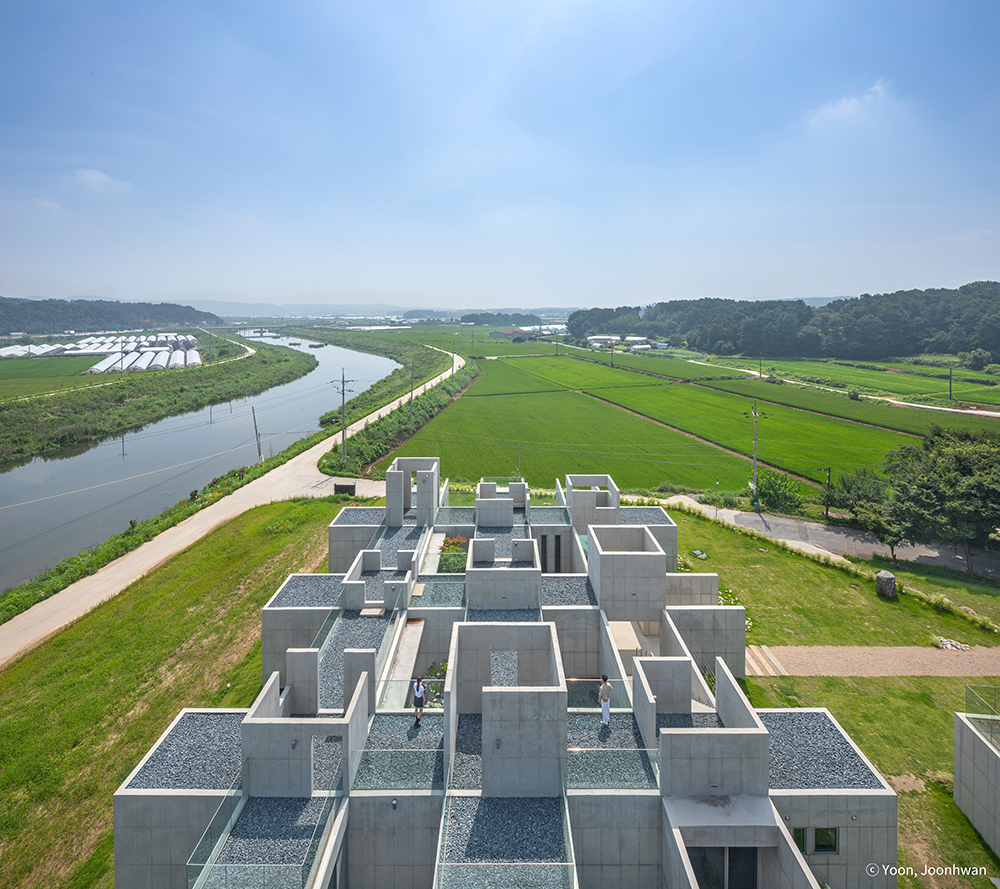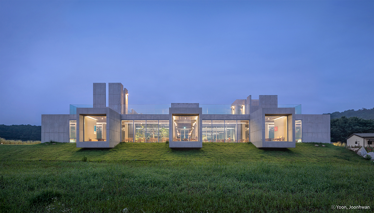 우선 ‘논스페이스’라는 작품에 많이 관심을 가져주신 분들께 감사를 전하고 싶습니다. 부족함이 많은 작품임에도 먼저 어워드 출품을 권해주시는 분들 덕분에 좋은 결과로 이어질 수 있었습니다. 논스페이스는 경기도 이천 호법면에 위치해 있습니다. 우리나라에서 벼를 가장 먼저 심고, 수확하는 지역에서 준공된 복합 문화공간을 지향하는 상업공간입니다. 동시에 농어촌 및 지방 소멸이라는 위기에 직면해 있는 문제를 해결하고자 제안한 실험적 공간이기도 합니다. 논으로 둘러싸인 땅을, 그리고 과거 논으로 사용되던 땅의 장소적 기억을 회복하기 위한 콘셉트로 설계를 진행했습니다. 이를 토대로 논을 경작하는 질서 체계인 가로와 세로 질서를 건축적 언어로 해석한 뒤 다양한 겹의 공간을 조직하고 볏짚 노출 콘크리트로 구축한 작품입니다.