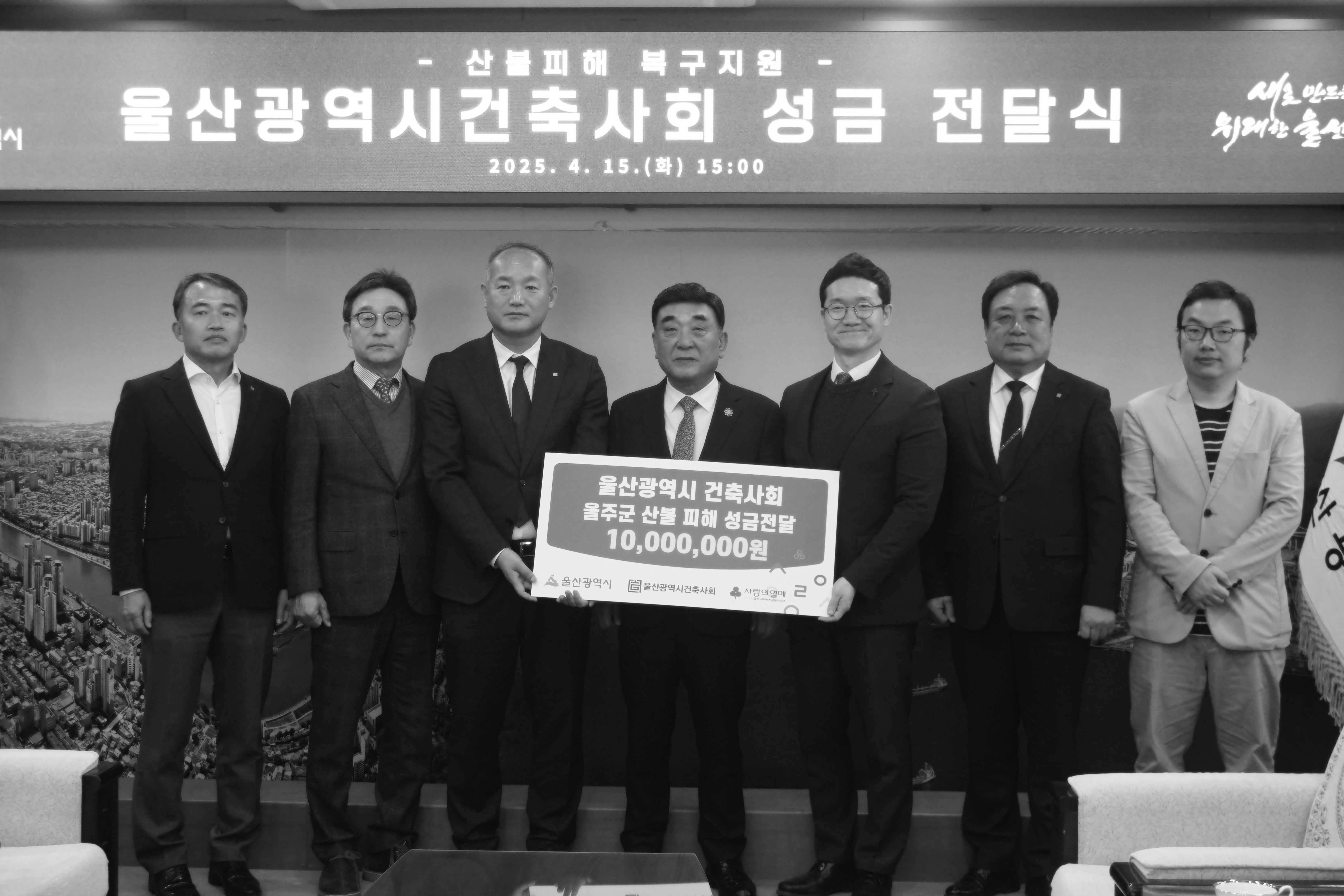 울산광역시건축사회는 4월 16일 울산광역시청에서 김두겸 시장과 울산사회복지공동모금회 양호영 사무처장이 참석한 가운데 산불피해 복구지원 성금 1,000만 원을 전달했다.