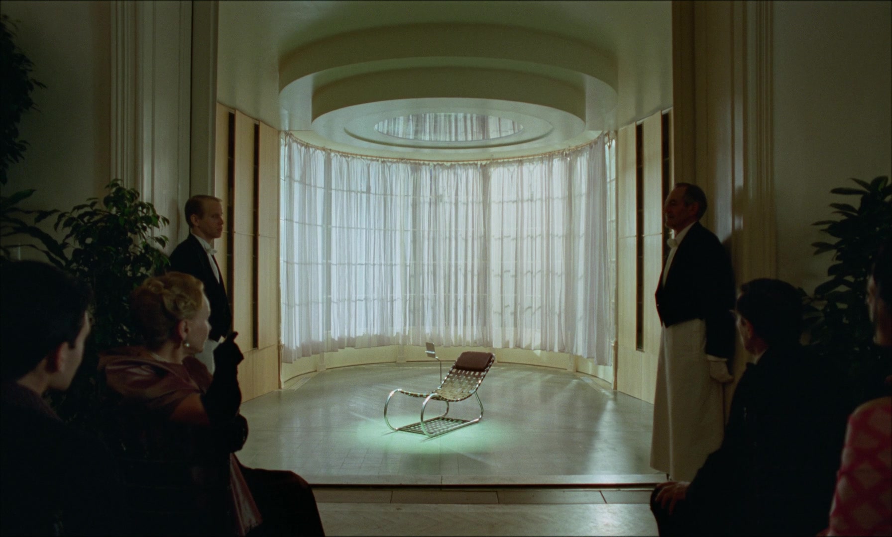 영화의 막바지에 토스 아내의 폭로로 해리슨은 갑자기 사라진다. 그의 가족과 손님, 하인들이 해리슨을 찾기 위해 토스가 디자인했으나 공사가 중단된 건물로 들어간다. 아무런 마감 없이 거칠고 삭막한 콘크리트 덩어리들이 관객을 압도한다.<사진 7>