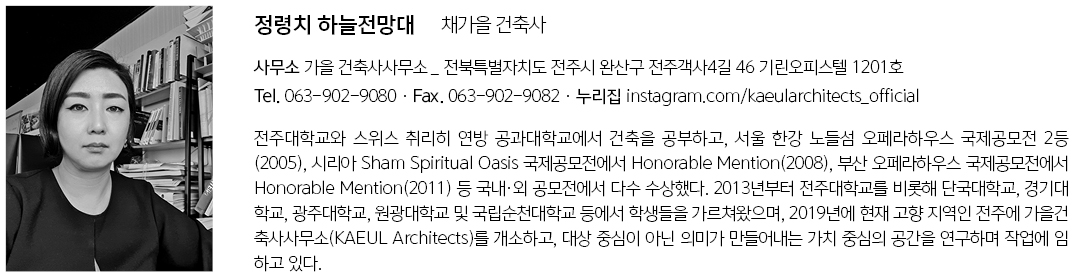 The shadows and light that shift across the wind-swept roofs and walls will leave visitors with the impression that this structure, too, is part of Jeongryeongchi’s eternal landscape.