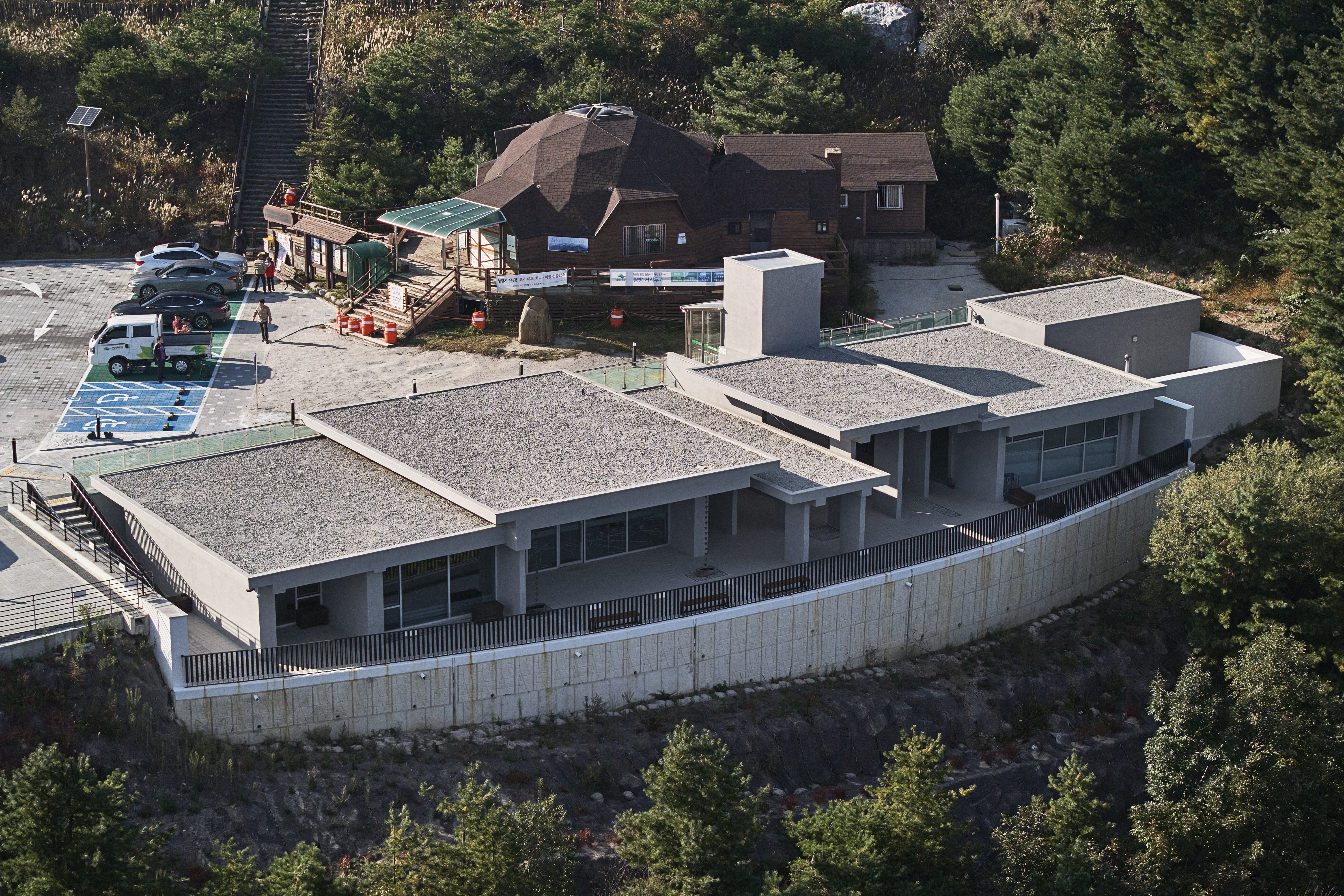 The current observatory site was established in the 1990s, using soil and rock excavated during the construction of the Seongsamjae parking lot to the south. The first Jeongryeongchi rest stop was completed in 1995-Korea’s first such facility within a national park. Lacking domestic precedents, the design was likely influenced by rest facilities in overseas national parks, resulting in a dome-shaped timber structure.