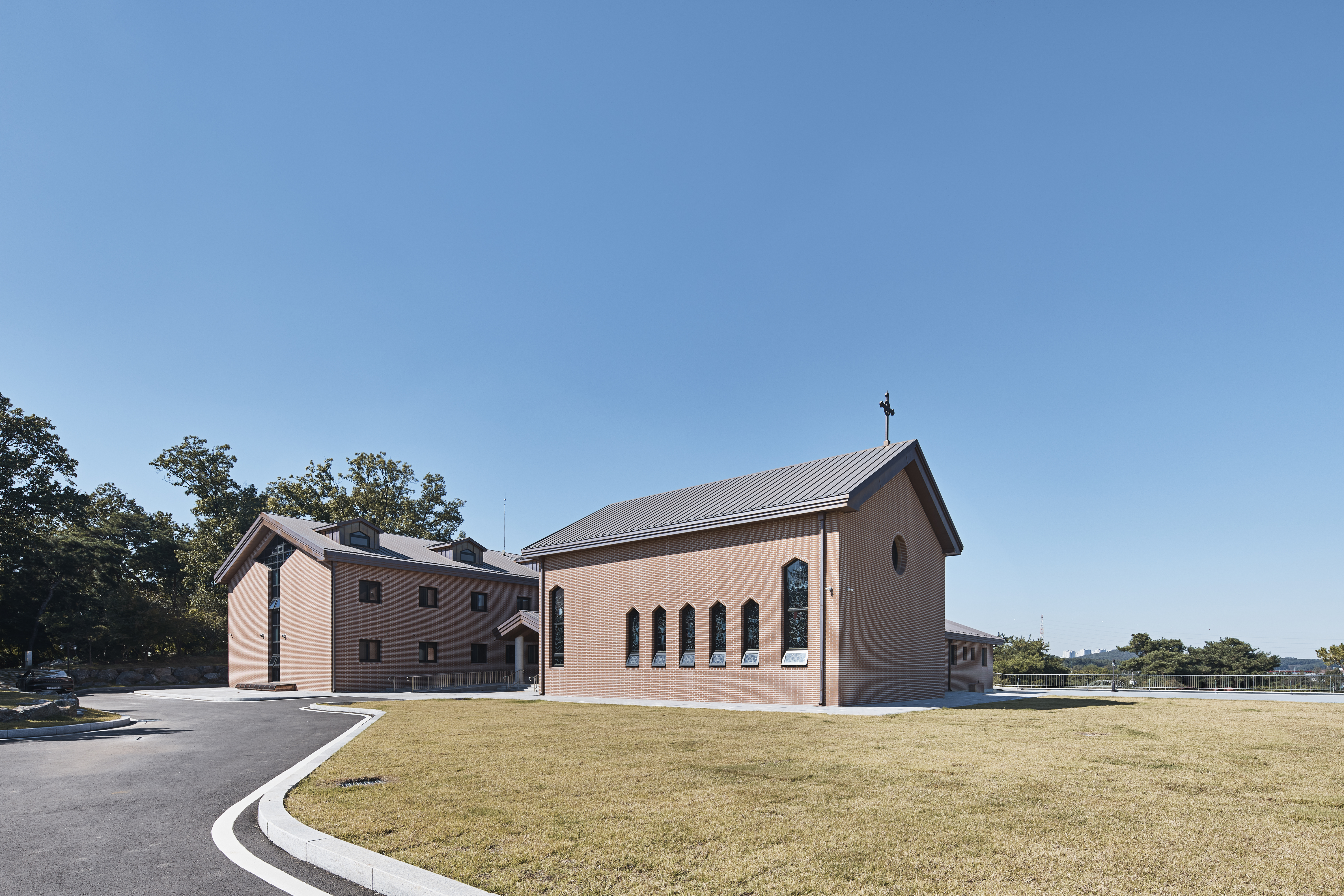 Gwanhang-ri Monastery Architect | Jeong, Jun Chul _ Pl.a architects Client | The Clerical Society of The most Holy trinty of Mirinae Supervisor | TG JONGHAP ARCHITECT & ENGINEERS Co., Ltd Construction | Taewon Construction Co., Ltd Project team | Pl.a _ Shin, Na Young / HAO _ Lee, Hongwon / Kim,Gye-won Location | Gwanhang-ri, Jeongnam-myeon, Hwaseong-si, Gyeonggi-do, Korea Program | Religious facilities Site area | 9,216.00㎡ Building area | 1,194.43㎡ Gross floor area | 1,342.84㎡ Building to land ratio | 12.96% Floor area ratio | 14.57% Building scope | B1F - 2F Structure | RC Exterior finishing | Clay brick, Shell Plate Interior finishing | Eco-friendlyPaint finish above Gypsum board Design period | Mar. 2020 - Apr. 2021 Construction period | May 2021 - Aug. 2022 Photograph | Lee, Nam Sun Structural engineer | Geumna Structure Engineering Mechanical·Electrical·Fire engineer | Dodam Architects&Engineering |