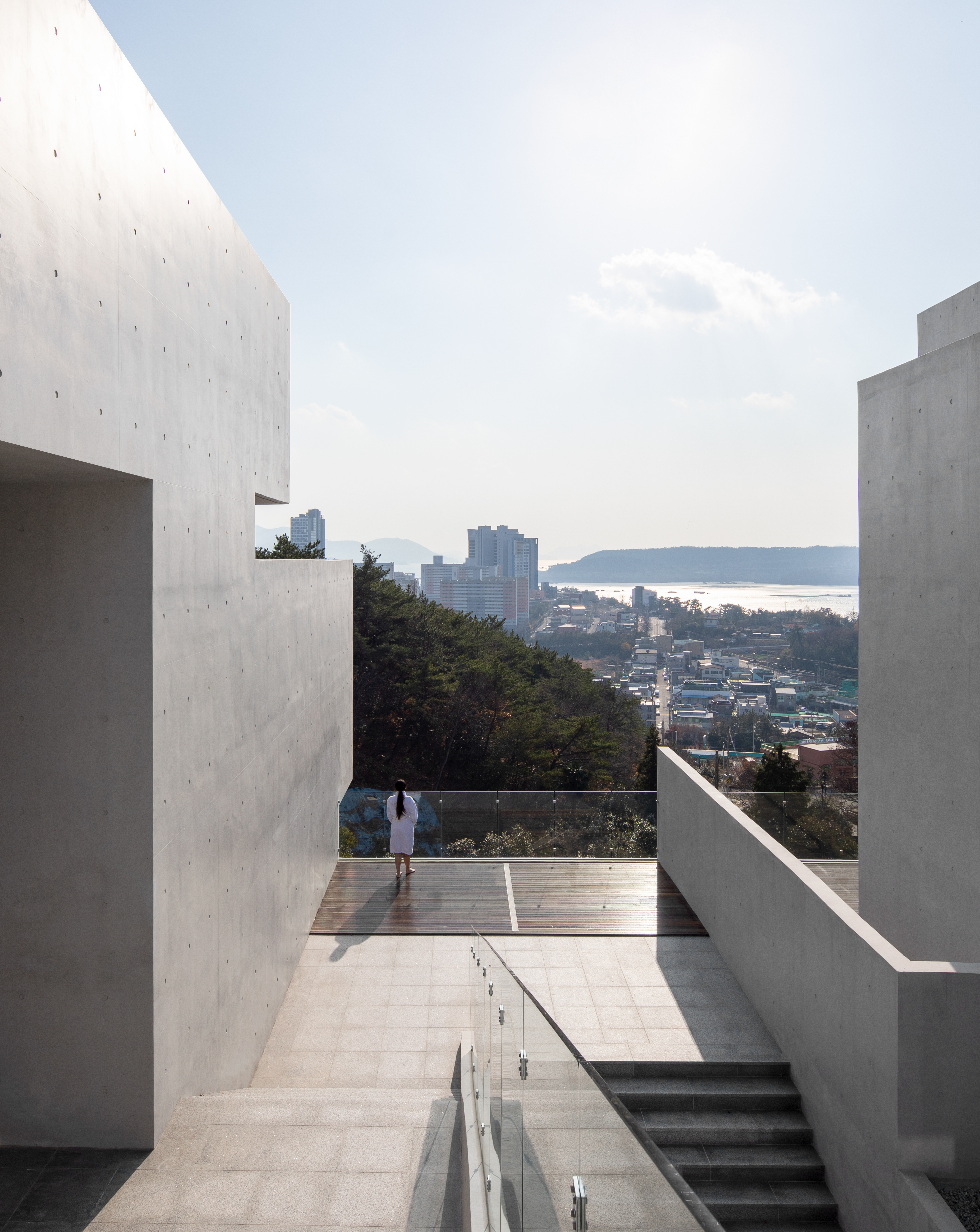 Bedrooms reinterpret the traditional Korean toemaroo (elevated wooden platform), offering passive ventilation, natural light, and optimal views bridging cultural reference with contemporary comfort.