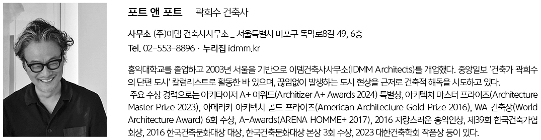 FORT & PORT Architect | Kwak, Heesoo _ IDMM Architects Client | Elystay Supervisor | Heeram Architects Construction | Dongsung Construction Location | Udu-ri, Dolsan-eup, Yeosu-si, Jeollanam-do, Korea Program | Accommodation Site area | 9,745.00㎡ Building area | 964.88㎡ Gross floor area | 2,999.36㎡ Building to land ratio | 9.9% Floor area ratio | 22.66% Building scope | B2F - 4F Structure | RC Exterior finishing | Exposed concrete Interior finishing | Exposed concrete, Paint Design period | Jun. 2020 – Oct. 2020 Construction period | Oct. 2020 – Jul. 2022 Photograph | Kim, Jaeyoun Structural engineer | S.D.M PARTNERS Mechanical engineer | DOOHYUN M&C Electrical engineer | CHUNGWOO ENG |