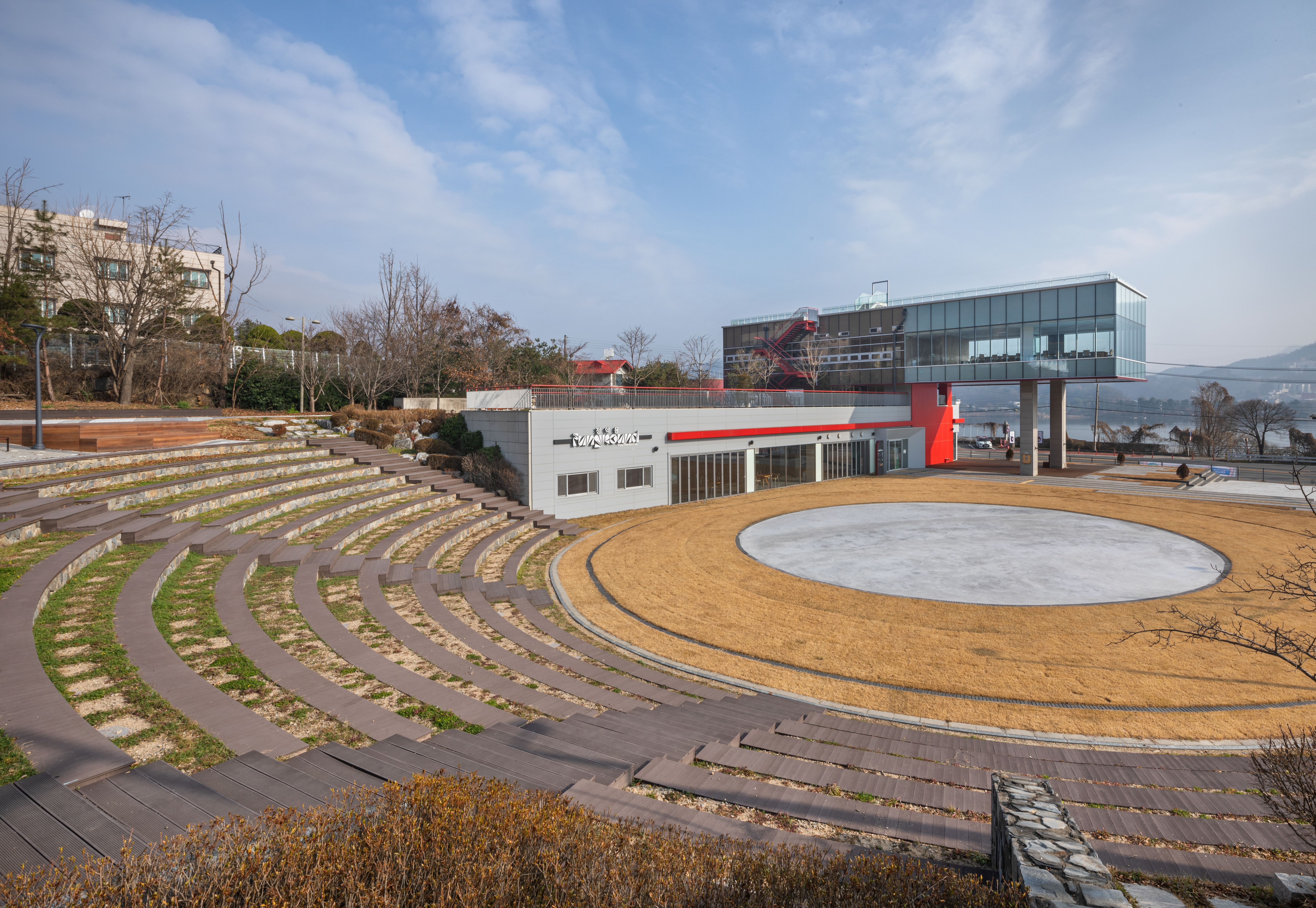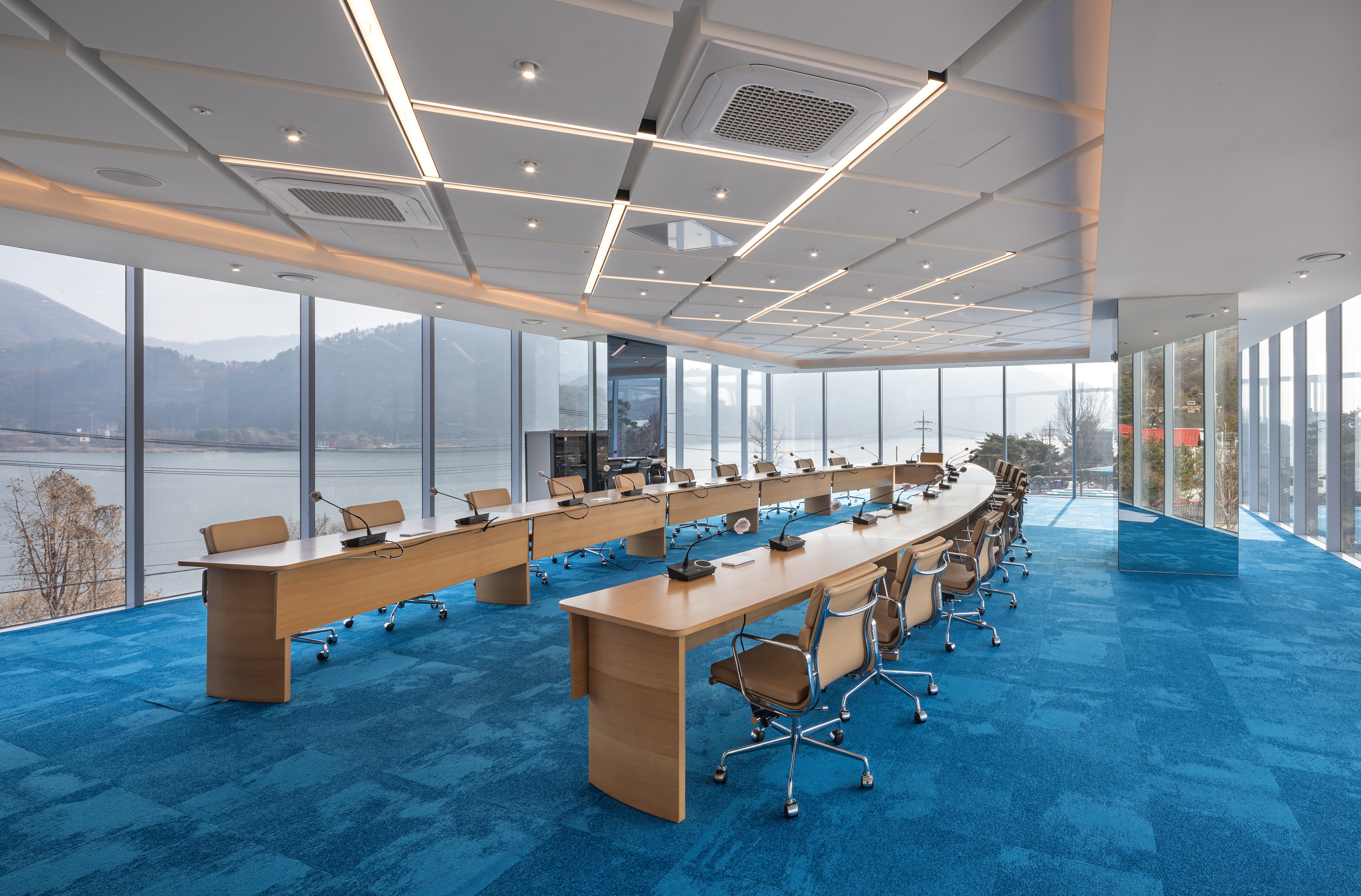 부유하는 건물의 매스(공간)를 활용해 북한강 조망이 한눈에 들어오는 곳에 세미나실을 배치하여 자연에서 만끽할 수 있는 최상의 경치(View)를 제공했다.