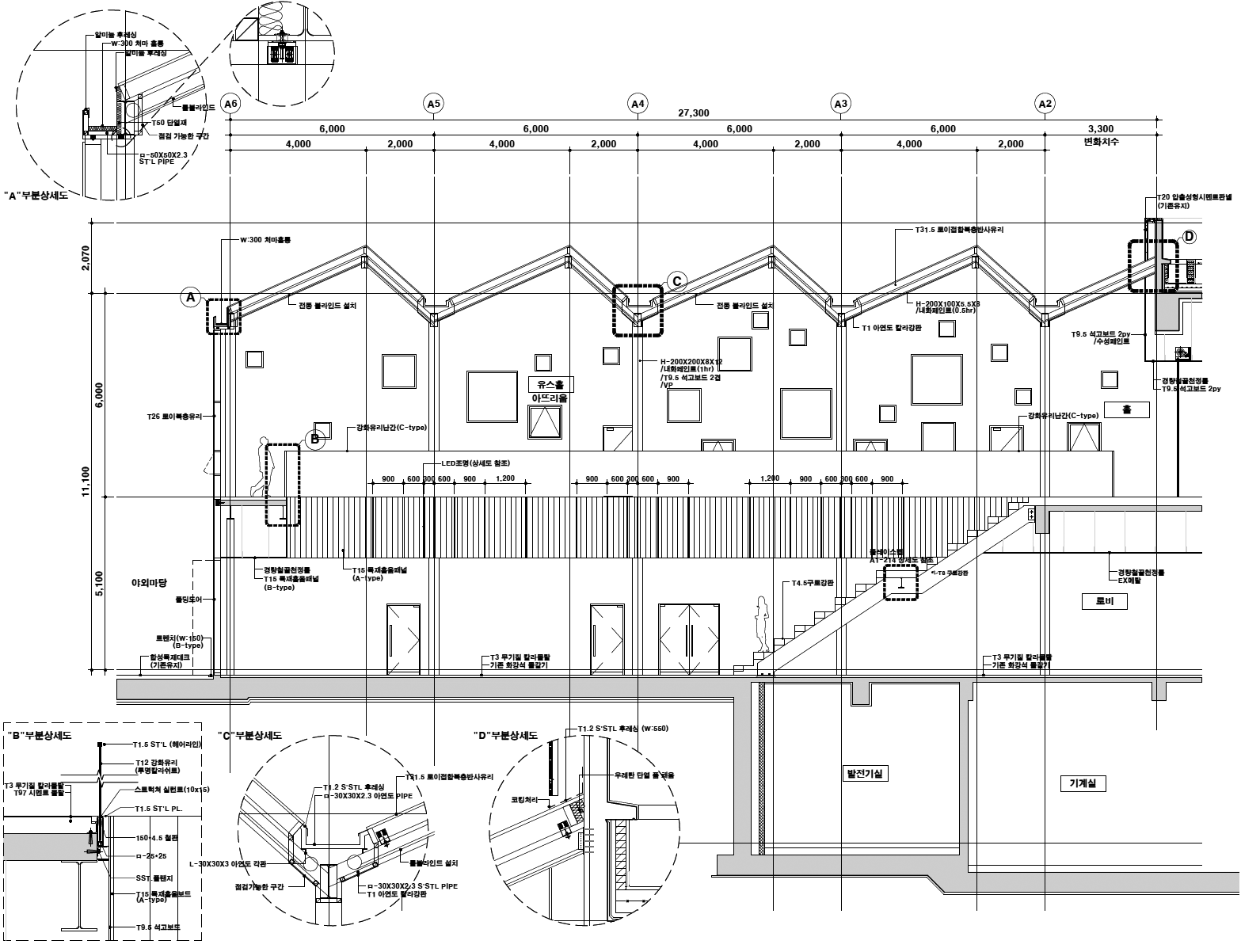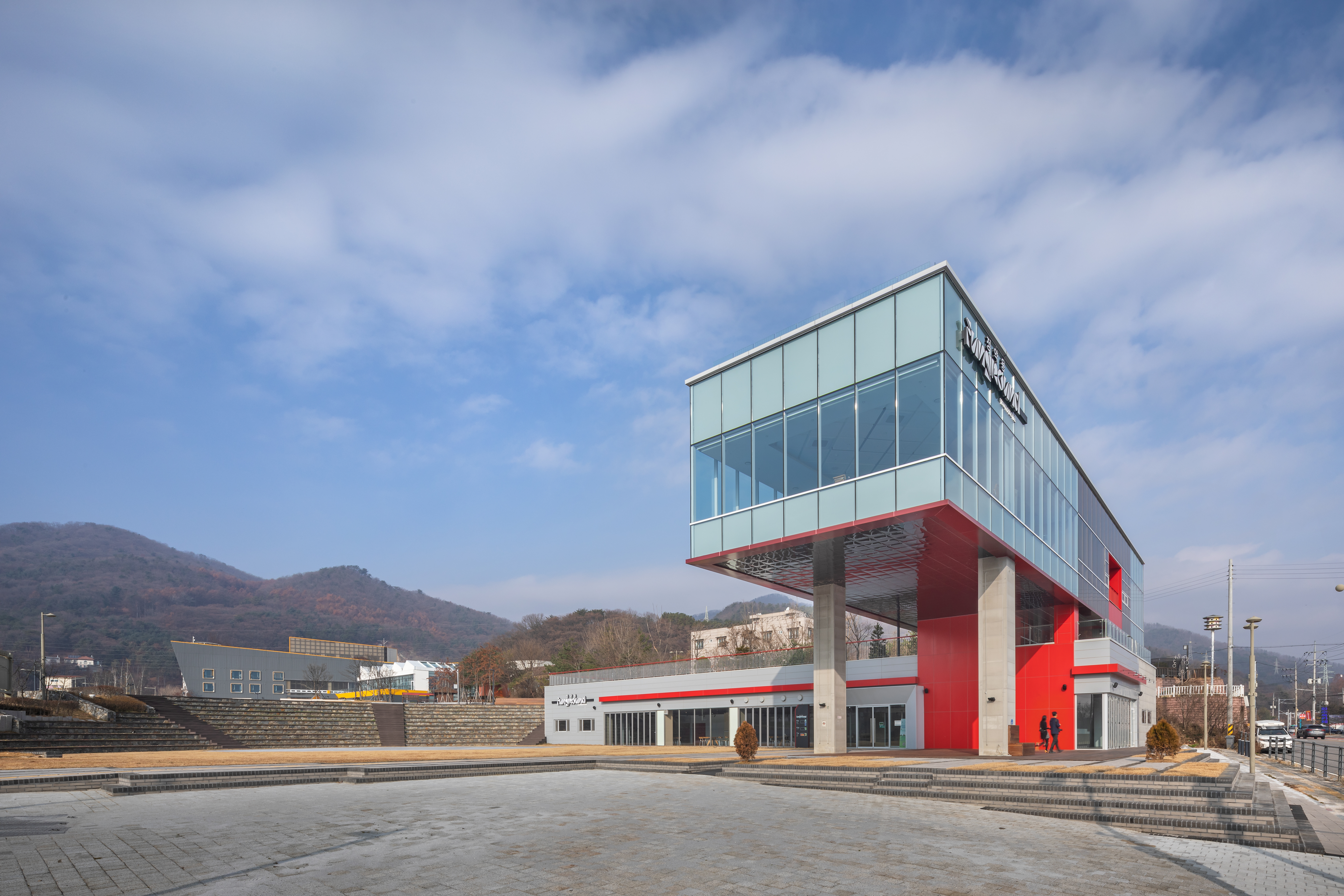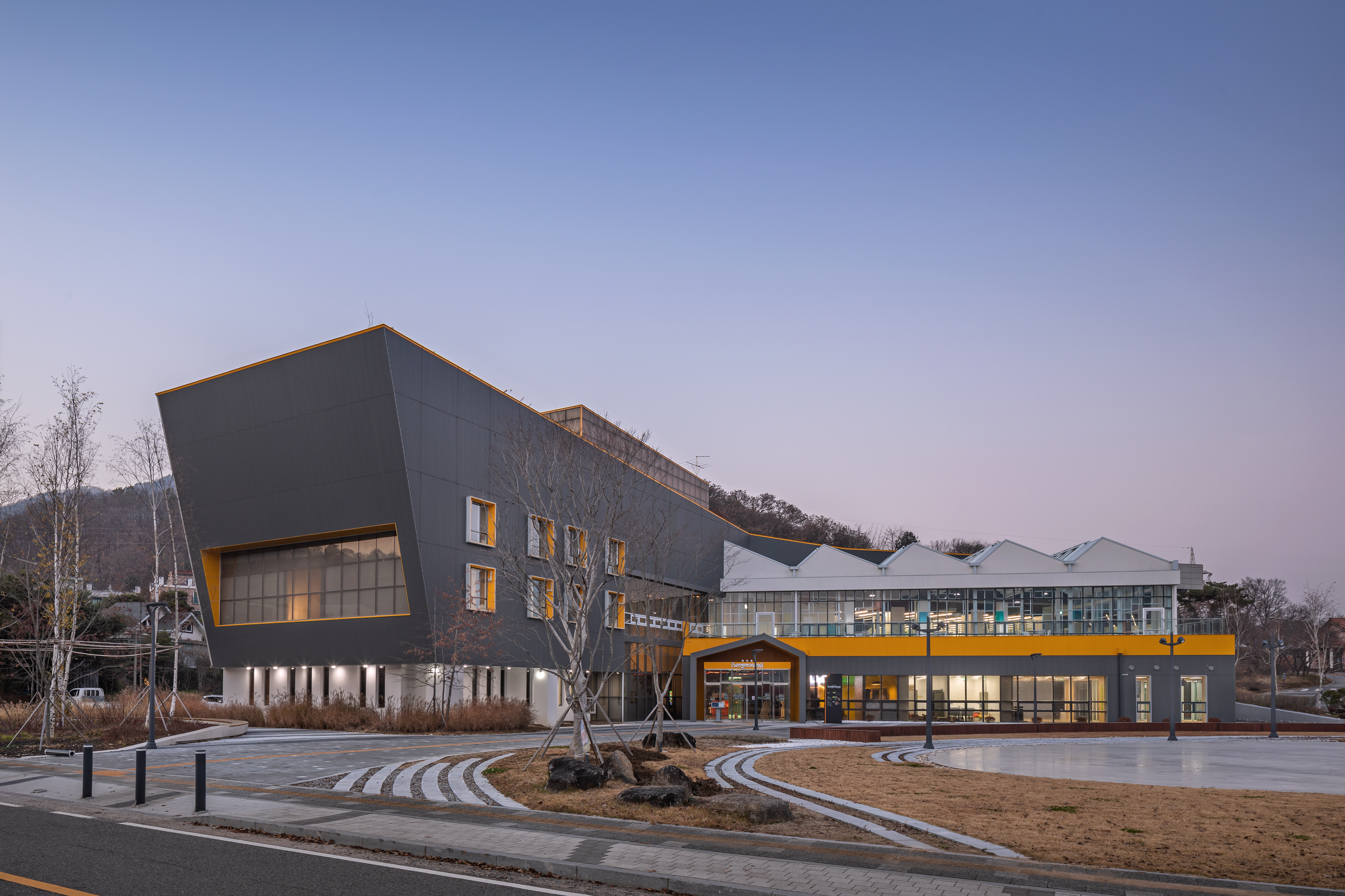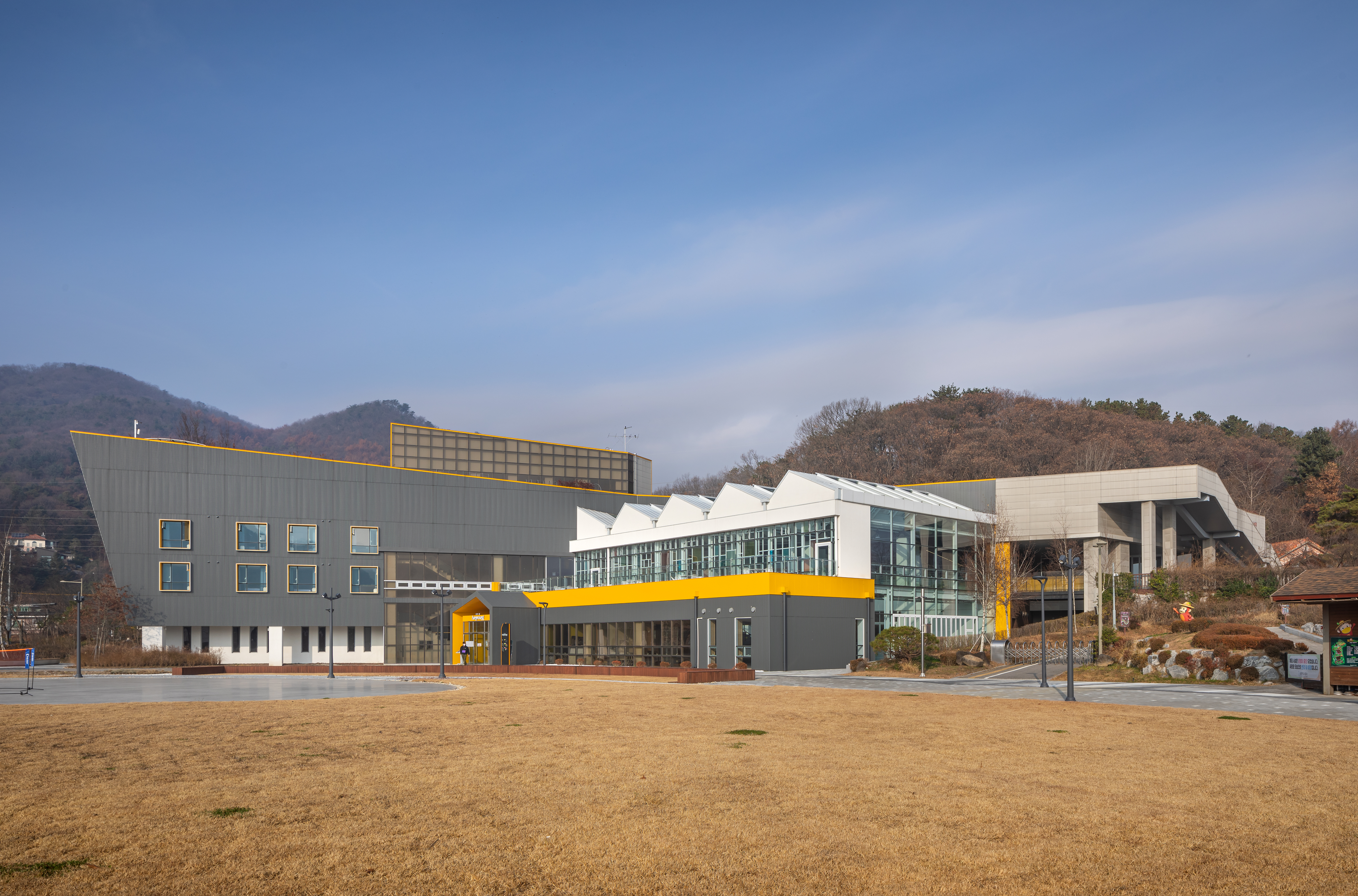 Jungyakyong Funground Architect | Kim, Kyungnam _ BORN ARCHITECTS Client | Youth Policy Division, Namyangju City Supervisor | Namyangju Urban Corporation Construction | Seonggong Construction Co., Ltd Project team | Kim, Kyungnam / Cho, Sunghyun / Lee, Yusook / Jung, Hara / Jun, Eunji Location | Sambong-ri, Joan-myeon, Namyangju-si, Gyeonggi-do, Korea Program | Training Facility, Cultural and Assembly Facility Site area | 34,680.00㎡ Building area | 3,306.95㎡ Gross floor area | 5,573.47㎡ Building to land ratio | 11.81% Floor area ratio | 15.94% Building scope | B1 - 3F Structure | RC / Steel Frame Exterior finishing | Color Steel Plate(1.0T LUXTEEL PANEL) Interior finishing | EX Metal, Colored Mortar, Wooden Acoustic Panels, Eco-friendly Water-based paint Design period | Dec. 2019 - Aug. 2020 Construction period | Oct. 2020 - Oct. 2022 Photograph | Yoon, Junhwan Structural engineer | Seyoung Structural Engineers Co., Ltd. Mechanical·Electrical·Fire engineer | Taeyoung EMC Co., Ltd. |