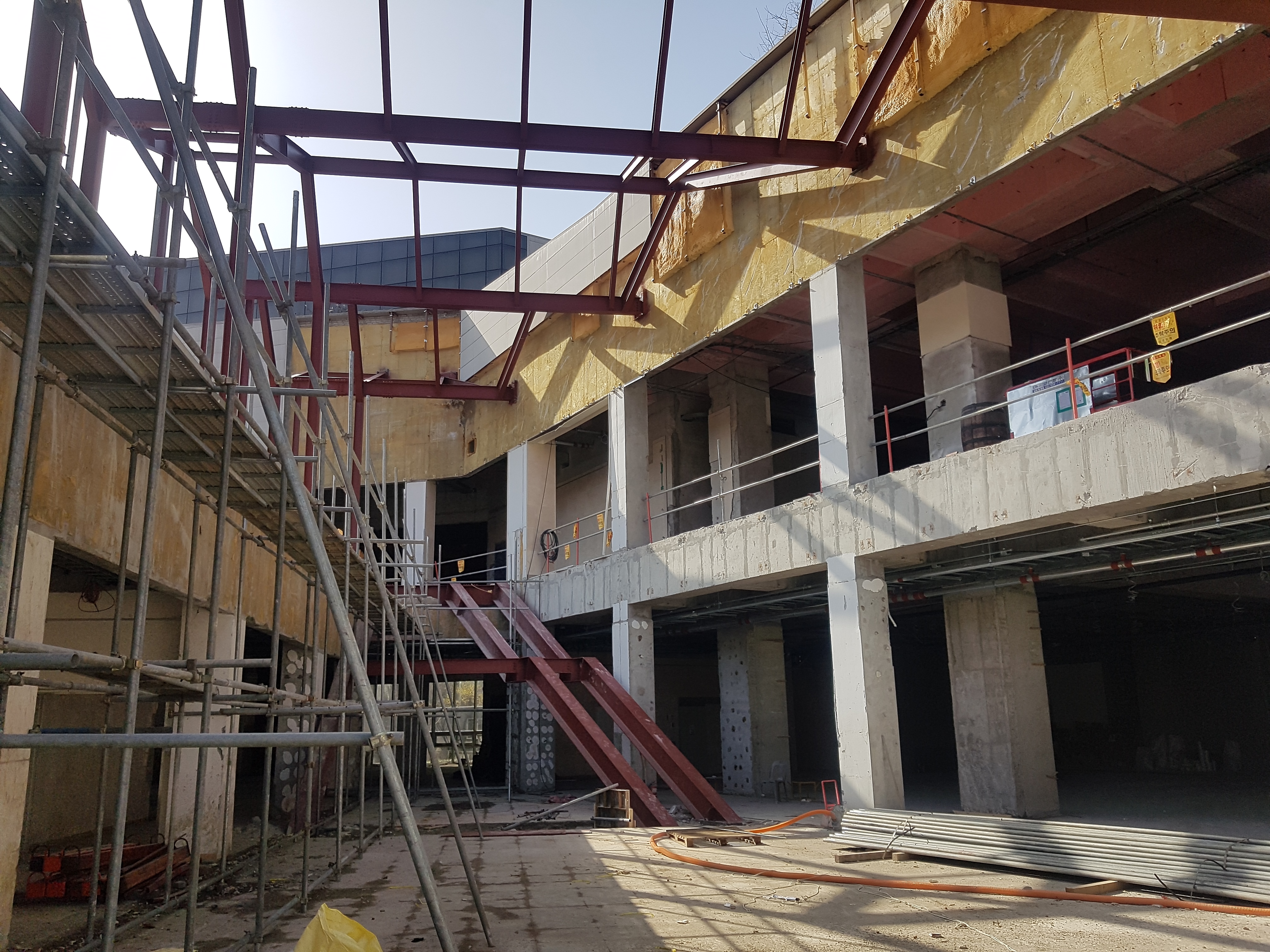 건축적 장치인 아트리움(유스홀)을 건물 사이 외부 공간에 삽입하여 청소년이 가장 좋아하는 개방되고 트인 대공간을 만들었다.