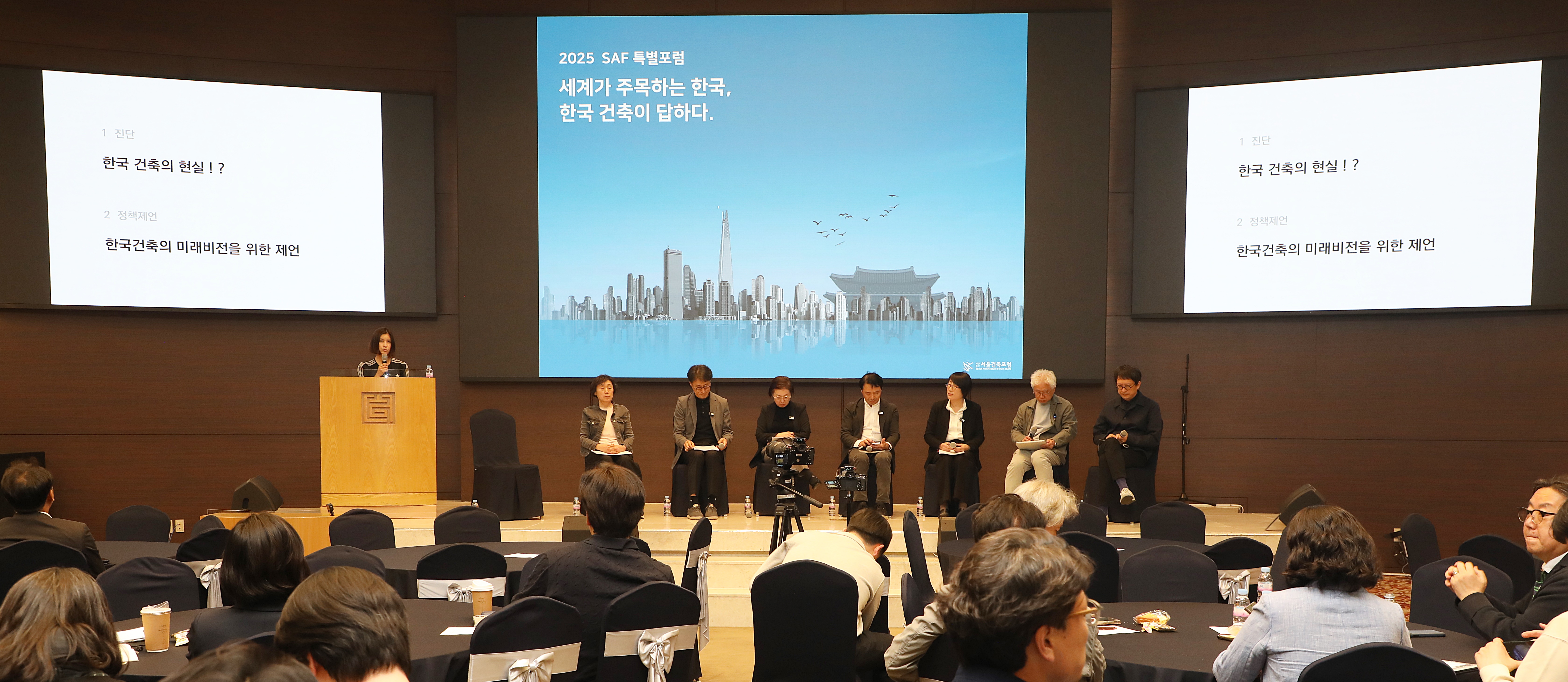 국제적으로 한국 문화에 대한 관심이 높아진 21세기, 국내 건축사와 도시계획가, 교수, 건축비평가 등이 한자리에 모여 대한민국 건축과 건축 정책의 방향과 미래 비전을 논의하는 자리가 마련됐다. (사)서울건축포럼(SAF)이 주최·주관한 특별포럼 ‘세계가 주목하는 한국, 한국건축이 답하다’는 5월 12일 대한건축사협회 대강당에서 열려 건축 전문가와 학생 등 150여 명이 참석했다. 이번 포럼에서는 한국 건축계의 현주소를 짚고, 국제적 흐름에 발맞춰 한국 건축이 나아가야 할 방향과 이를 뒷받침할 정책에 대한 논의가 이어졌다.