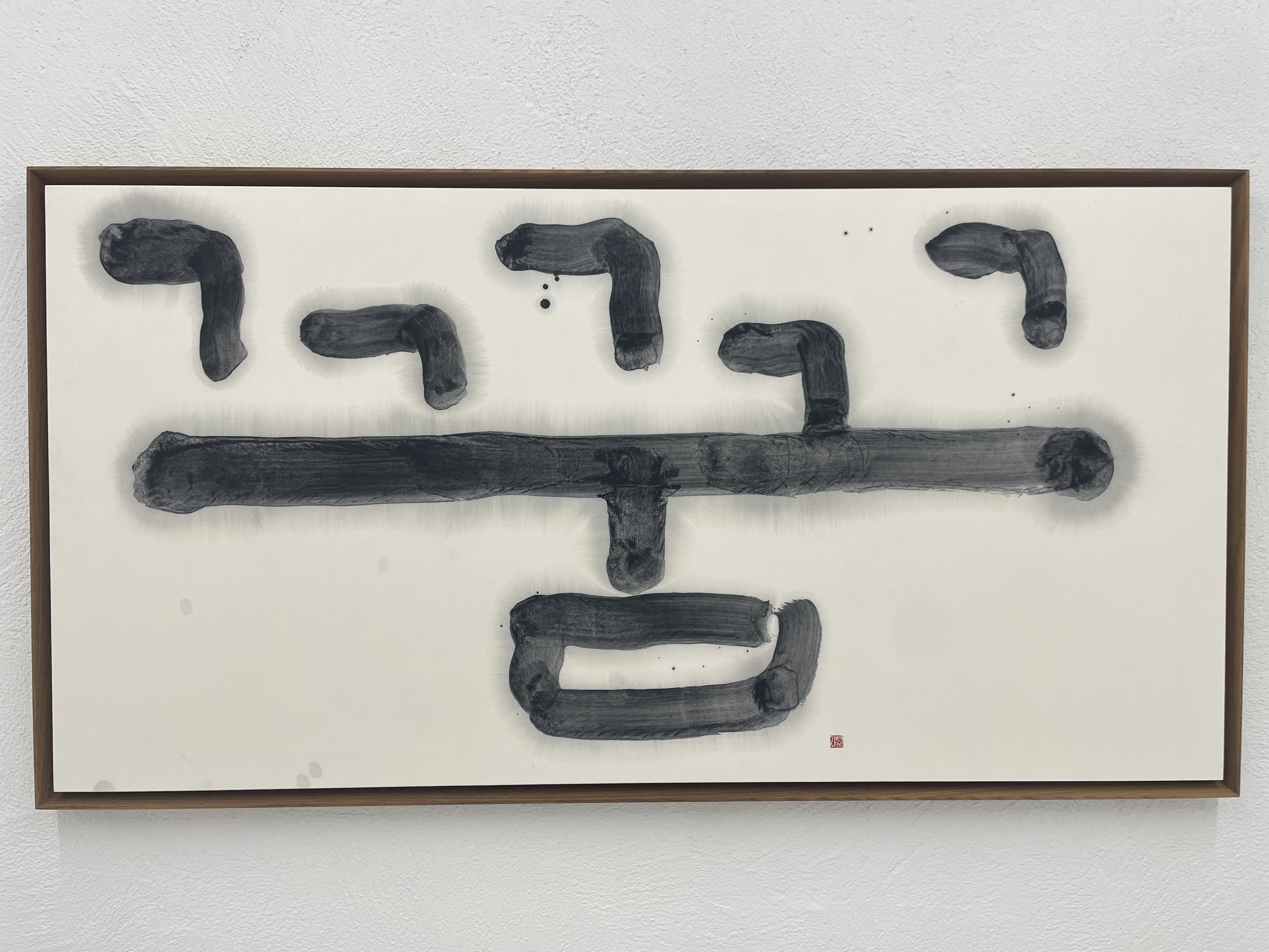 강병인은 자연스럽게 붓으로 글자를 만들면서 이러한 붓과 먹, 그리고 종이가 만들어내는 표현에 주목했을 가능성이 크다. 이로부터 그는 기호로서의 글자에서 벗어나 먹의 표현을 실험하는 단계로 넘어간다. 다시 말해 지시의 기표에서 벗어나 표현의 기표에 더욱 매달리게 되는 것이다. 그런 작품들이 이번 전시에 출품되었다.<사진 8>