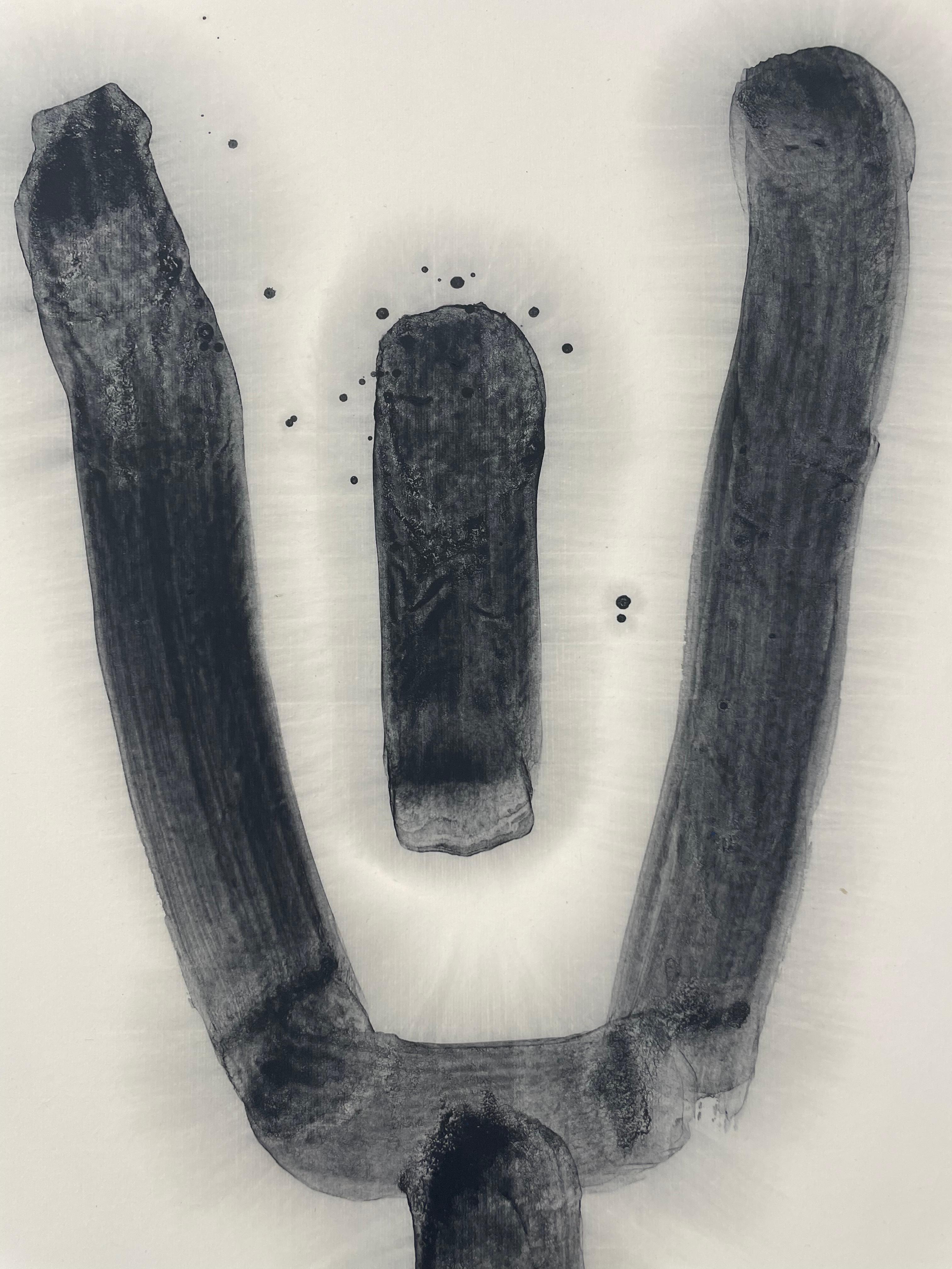 그렇게 표현된 먹의 질감은 작가가 의도한 것이지만, 그 선과 면의 계조는 완벽하게 통제할 수 없는 것이다.