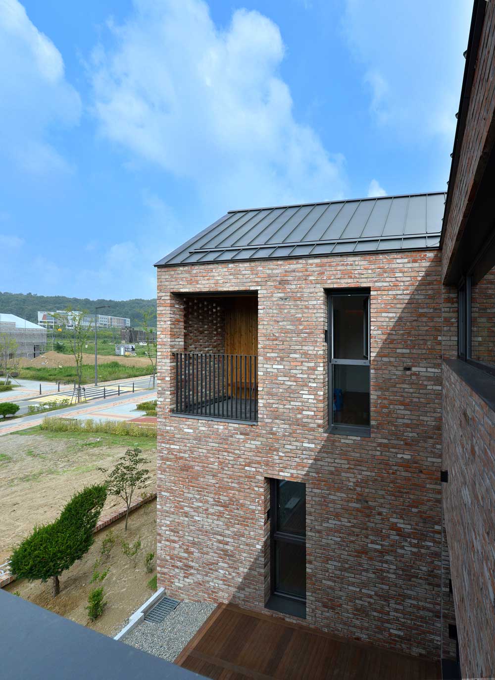 | 허백당(虛白堂) 설계자 ┃ 권재희 KIRA ┃ (주)목금토 건축사사무소 건축주 | 방경식 감리자 | 선상희 _ SUP 건축사사무소 시공사 | 임용철 _ 수하우징 대지위치 | 세종특별자치시 고운북2길 3 주요용도 | 단독주택 대지면적 | 331.10㎡ 건축면적 | 121.02㎡ 연면적 | 190.66㎡ 건폐율 | 36.56% 용적률 | 57.60% 규모 | 지상 2층 구조 | 철큰콘크리트조 외부마감재 | 외벽 - 고벽돌 및 벽돌 깨어붙이기(신우 벽돌) / 지붕 - 컬러강판 내부마감재 | 벽 - 던에드워드 도장, LG하우시스 벽지 / 바닥 - 강마루, 포세린 타일 설계기간 | 2015. 08 ~ 2016. 02 공사기간 | 2016. 03 ~ 2016. 09 사진 | 변종석, 권용상 구조분야 : SDM구조 기계설비분야 : 수호엔지니어링 전기분야 : 수호엔지니어링 소방분야 : 수호엔지니어링 |