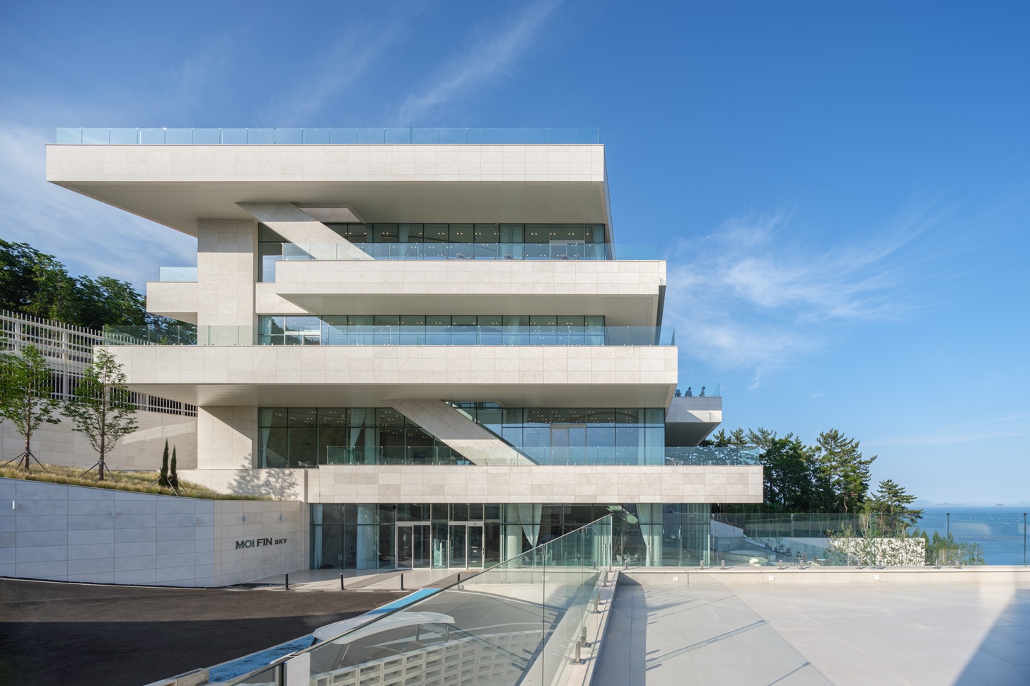 | 모이핀 스카이 설계자 | 김창균·최병용 _ (주)유타 건축사사무소 건축주 | (유)모이핀스카이 감리자 | 한려 건축사사무소 시공사 | 오아시스건설(주) 설계팀 | 주병규, 이슬기, 성영은 설계의도 구현 | (주)유타 건축사사무소 대지위치 | 전라남도 여수시 돌산읍 평사리 주요용도 | 휴게음식점 대지면적 | 9,999.00㎡ 건축면적 | 2,342.91㎡ 연면적 | 3,083.79㎡ 건폐율 | 23.43% 용적률 | 24.20% 규모 | B1F - 4F 구조 | 철근콘크리트구조 외부마감재 | 갈랄라 샌딩 내부마감재 | 포쉐린 타일, 화이트 도장 설계기간 | 2021. 01 - 2022. 01 공사기간 | 2022. 02 - 2023. 11 사진 | 김용성 구조분야 | (주)하이구조 기계설비·전기·소방분야 | (주)코담기술단 |
