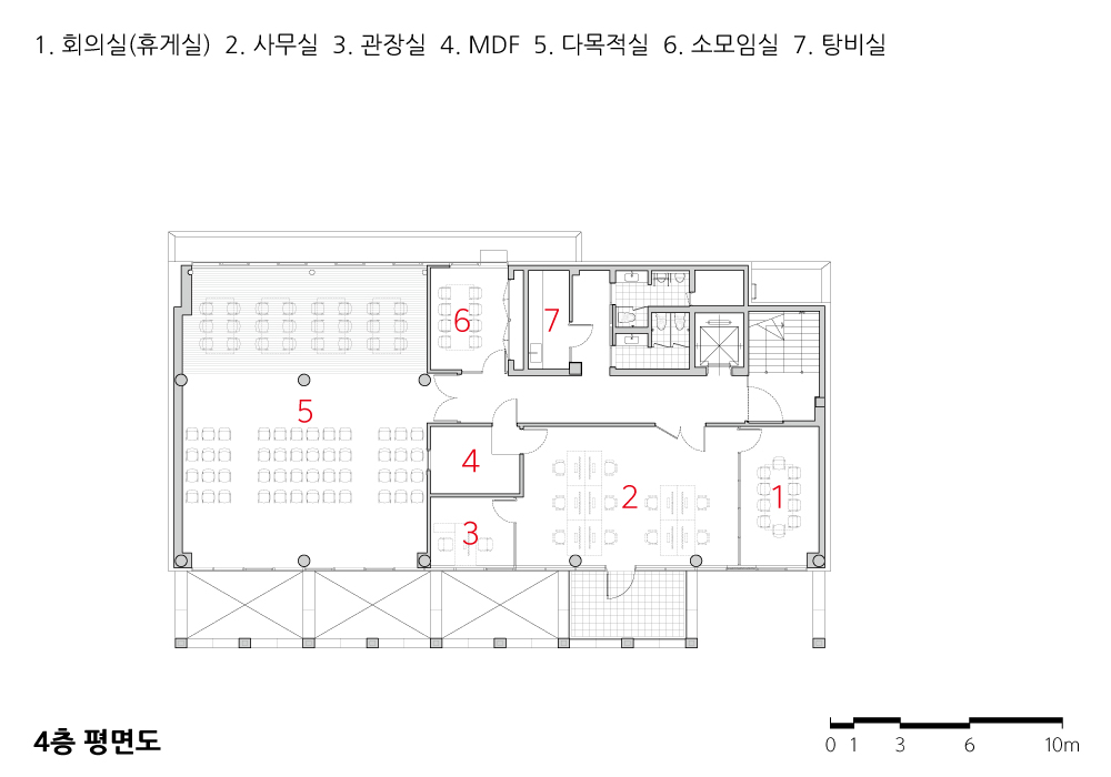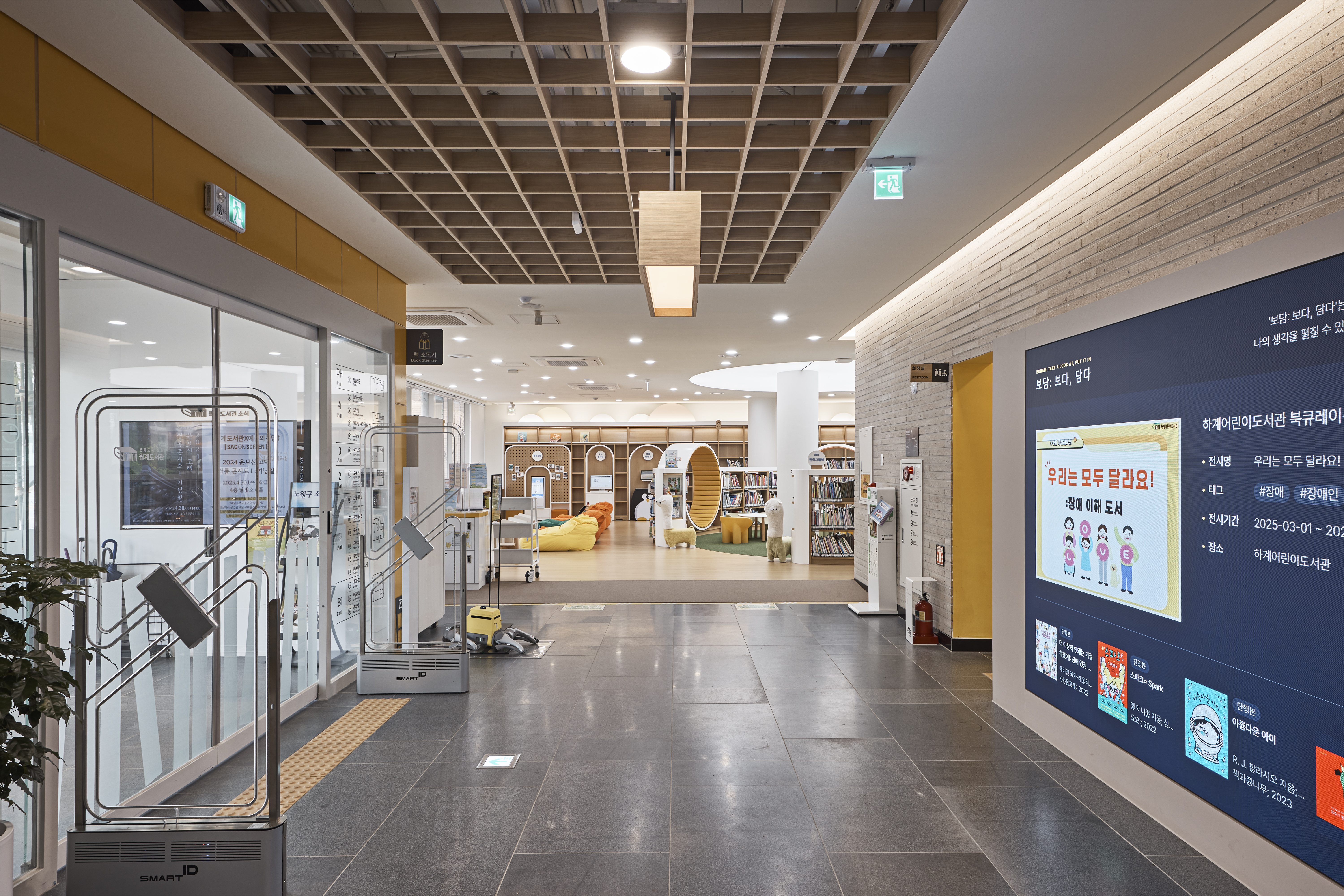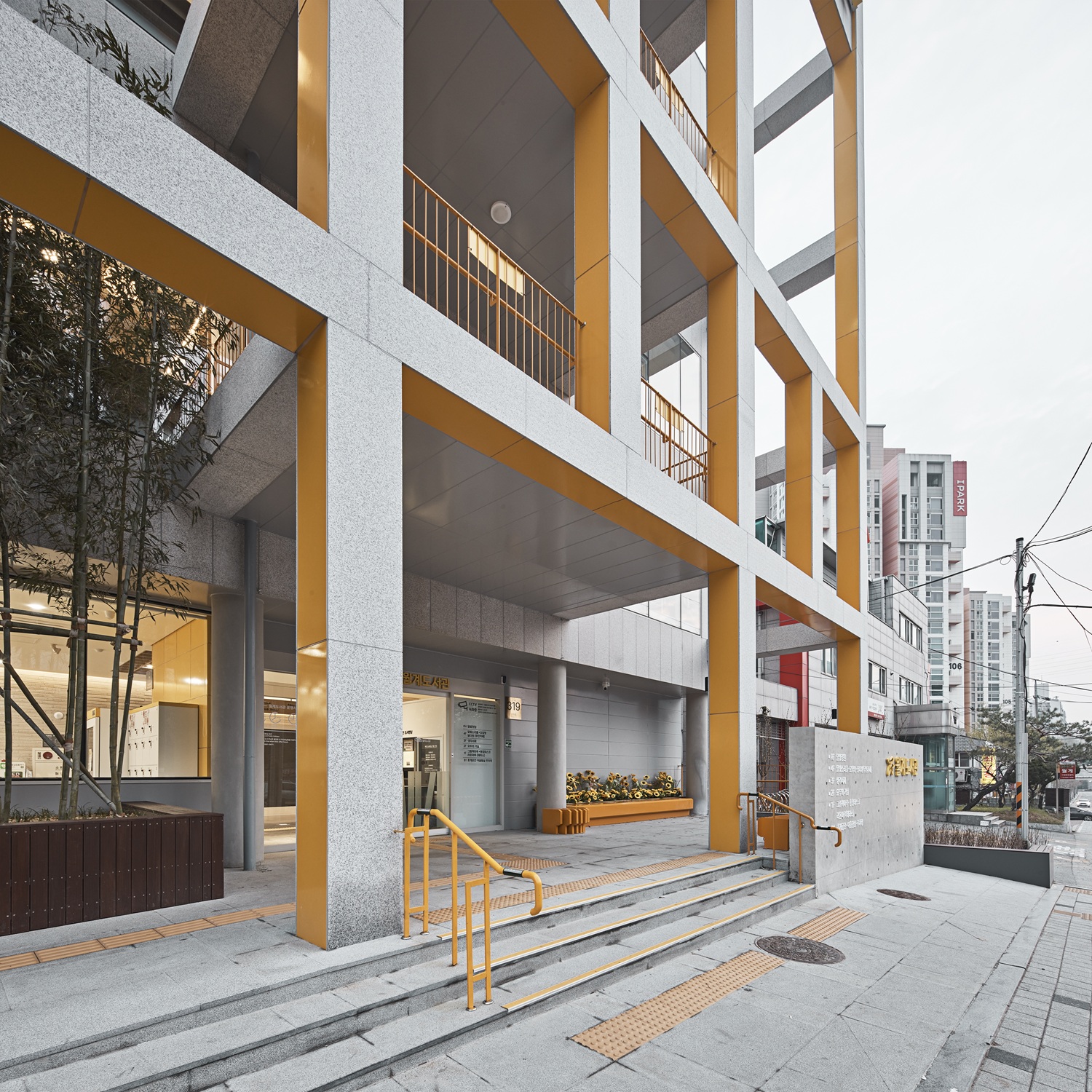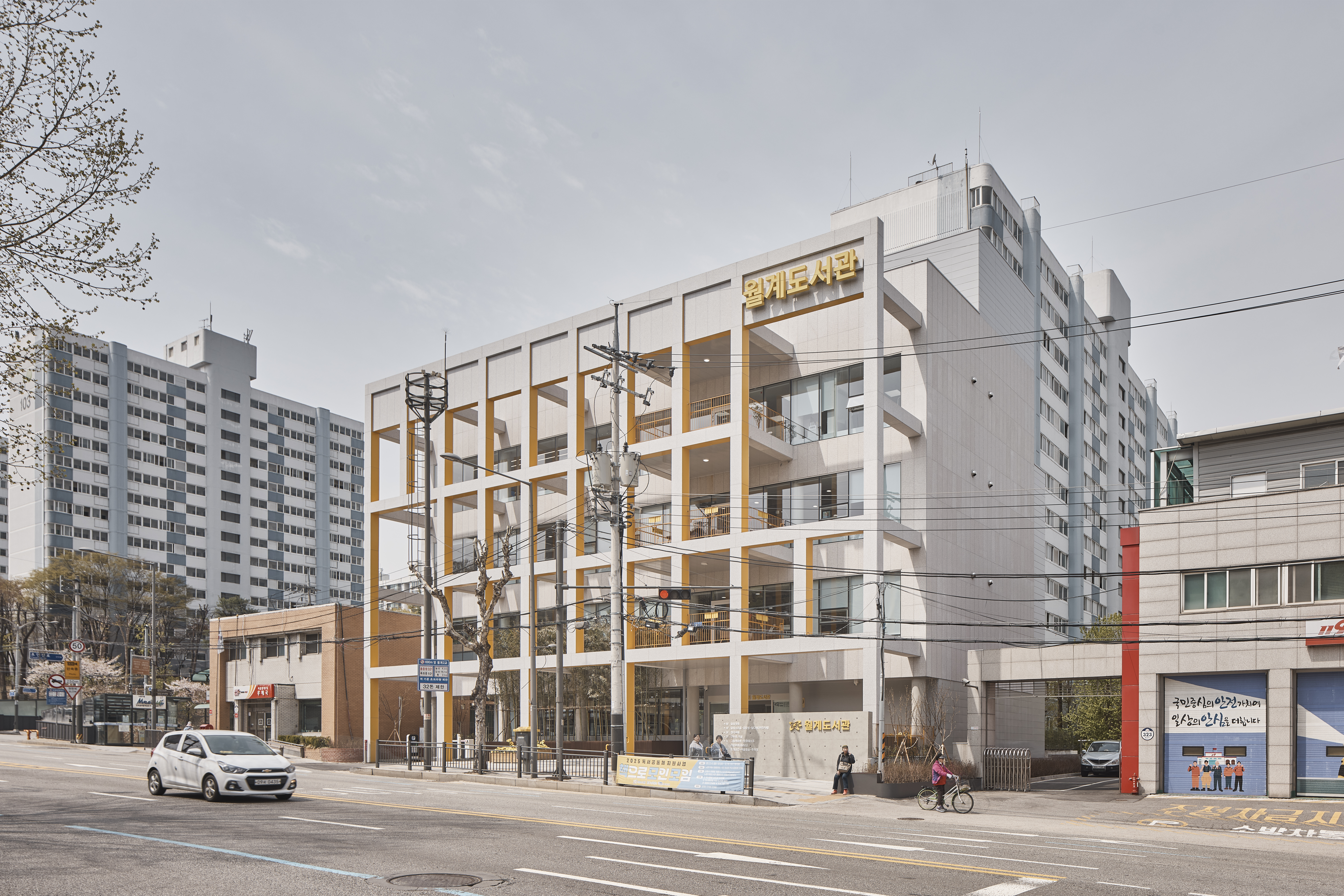 Library Wander Architect | Kim, Sekyung · Min, Seohong _ MMKM associates Client | Nowon District Office Supervisor | Kim, Daeyoung Construction | Wonjin Project team | Yim, Hongryang Design intention realization | Min,Seohong_MMKM associates Location | Wolgye-dong, Nowon-gu, Seoul, Korea Program | Educational & Research Facility(Library) Site area | 701.10㎡ Building area | 401.59㎡ Gross floor area | 1,980.01㎡ Building to land ratio | 57.28% Floor area ratio | 199.41% Building scope | B1 - 4F Structure | RC+SS Exterior finishing | Clear Low-E double glazed window, Granite, Color-coated steel plate Interior finishing | Porcelain tile, Cement tile, Granite, Laminate flooring Design period | Jul. 2022 - Apr. 2023 Construction period | Aug. 2023 - Feb. 2025 Photograph | Lee, Namsun Structural engineer | SDM Structural Engineering Mechanical·Electrical·Fire engineer | Jinwon Engineering |