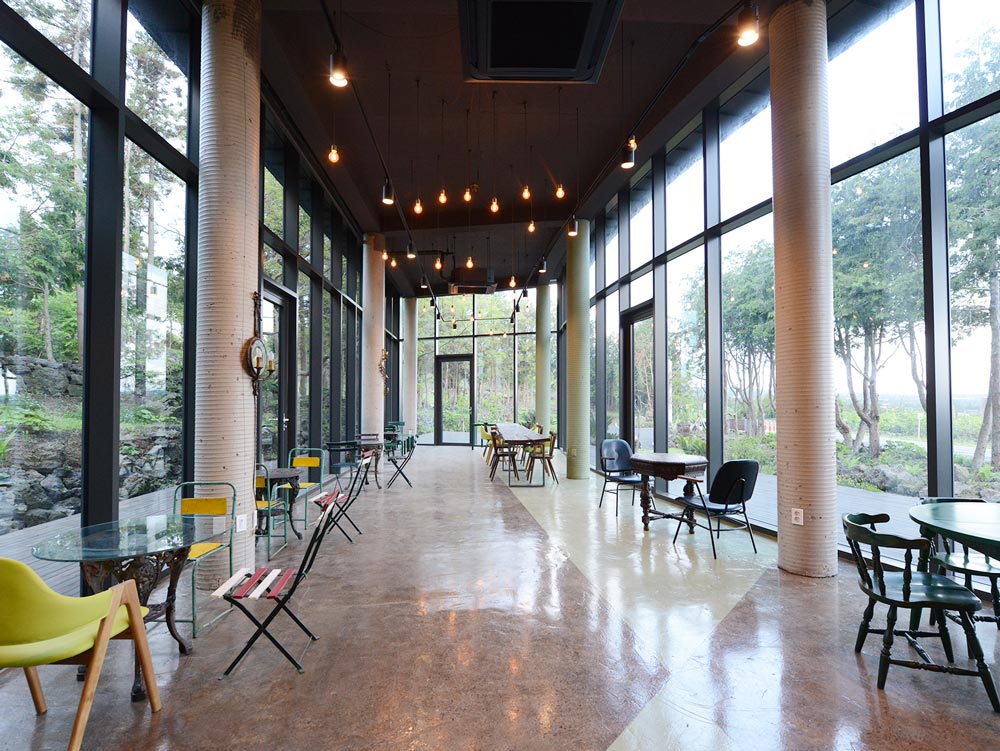 a space for. Before making space for rest, we tried to preserve nature as it is. To breathe with nature and make a building that will match the surrounding villages of Jeju. The eco-friendly building layout was achieved by reducing energy to maximising the use of sunshine on the southern elevation.
