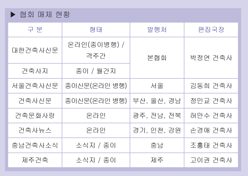 정민교 편집국장(부산)은 “건축사들이 공통적으로 인식하는 제도나 정책 관련 개선은 중요한 문제다. 전국적으로 동일한 이슈가 발생하면, 각지에서 동시에 같은 방향의 기사를 싣는 것이 오히려 효과적이고 접근도 쉬울 것”이라고 강조했다.