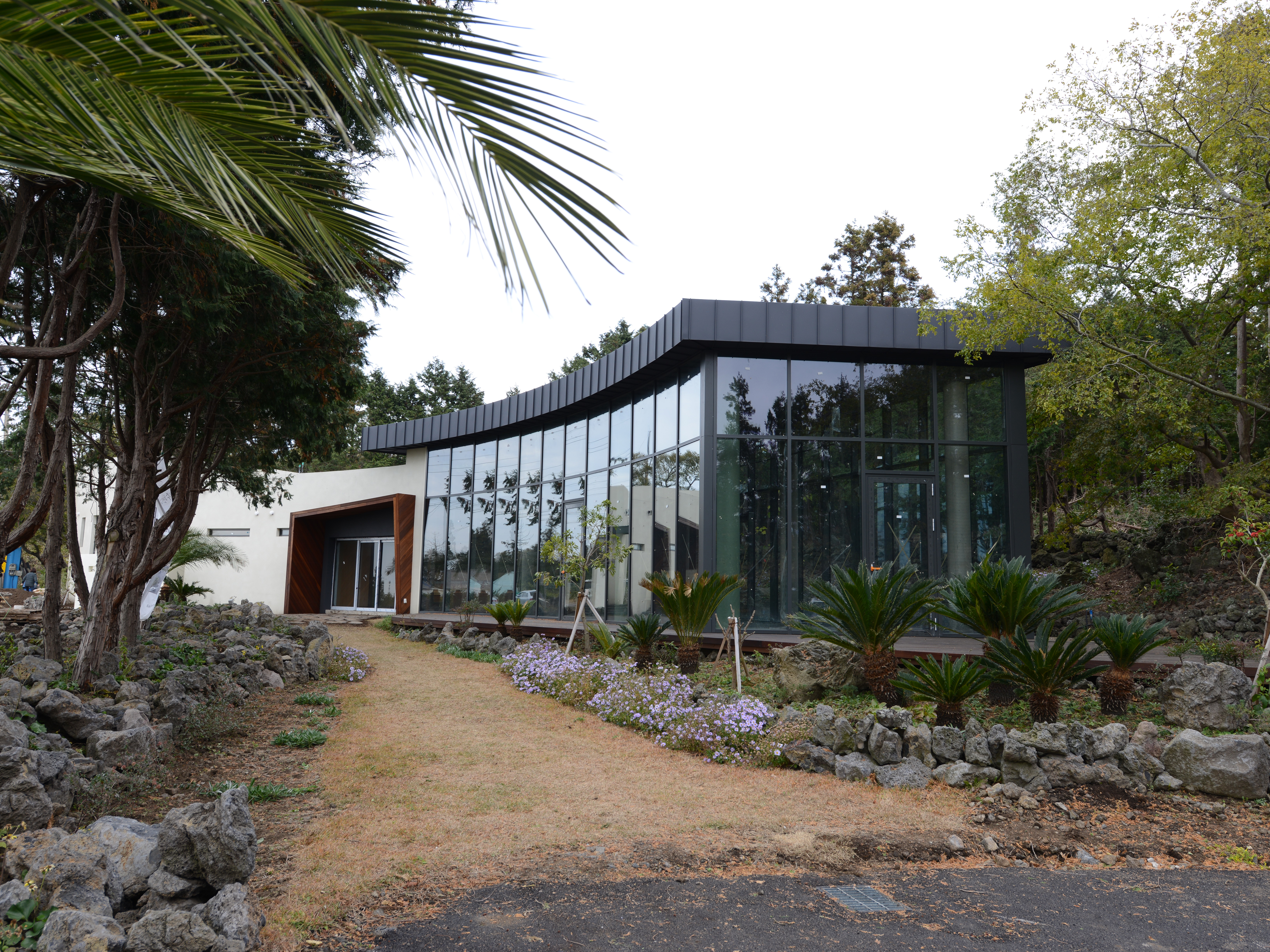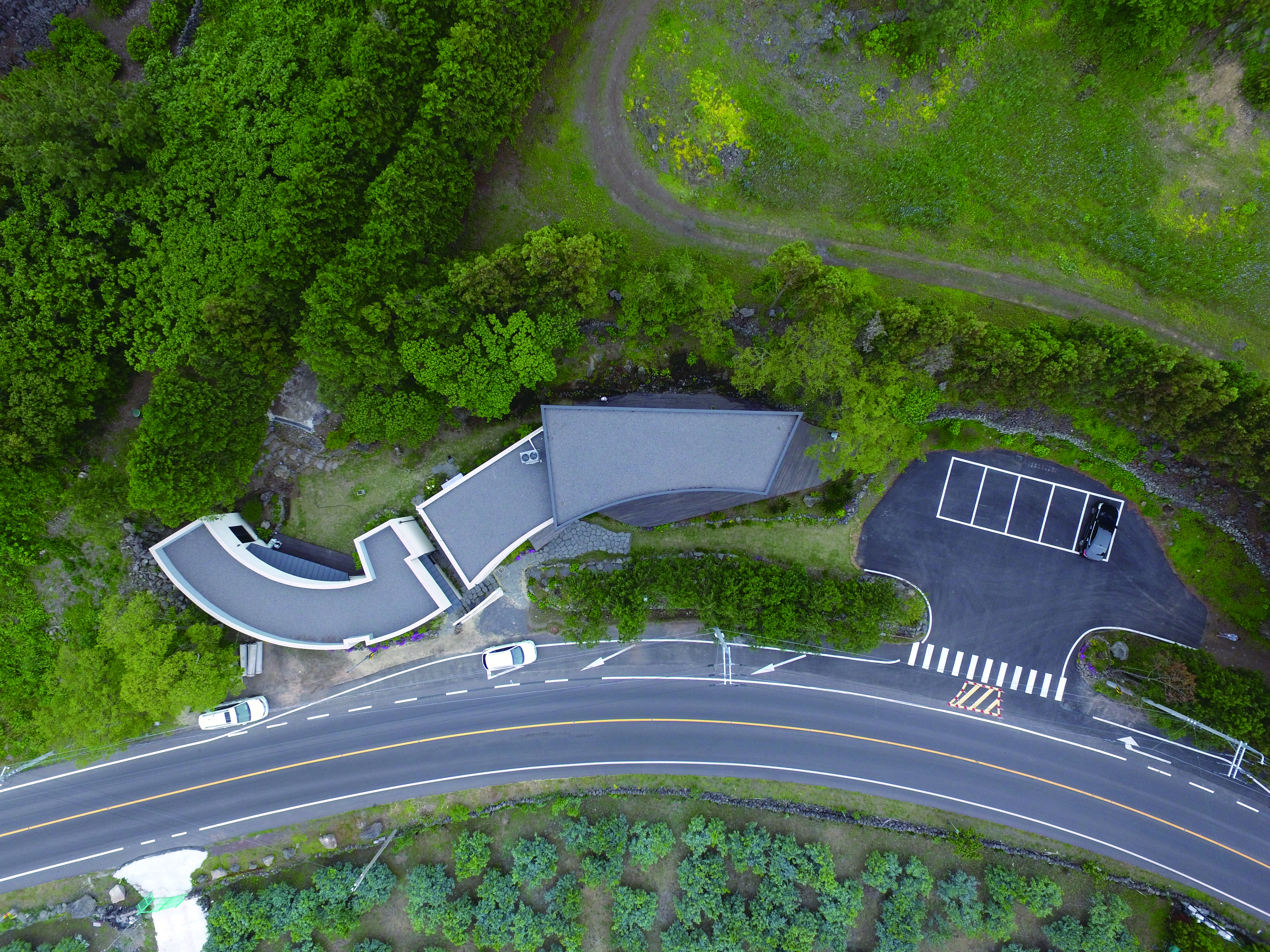 a space for. Before making space for rest, we tried to preserve nature as it is. To breathe with nature and make a building that will match the surrounding villages of Jeju. The eco-friendly building layout was achieved by reducing energy to maximising the use of sunshine on the southern elevation.