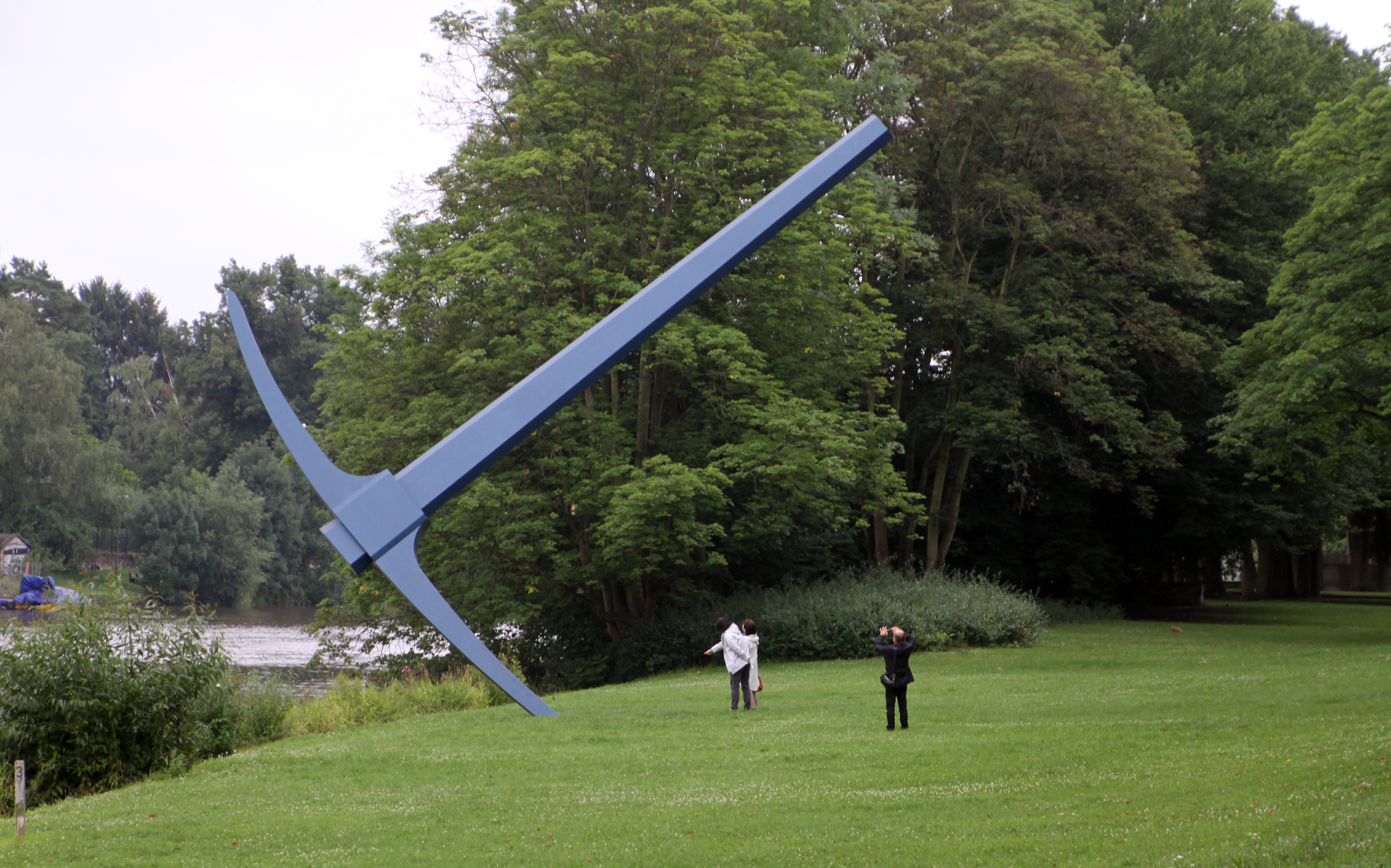 다른 한편 현대미술에서는 크기가 주는 두려움의 감정을 이용하지만 일단 이목을 끈 뒤 좀 더 자세한 감상으로 이끌려고 한다. 론 뮤익의 조각이 대표적이다. 론 뮤익의 거대한 조각을 관객이 흥미로워하고 그 앞에서 사진을 찍는 것은 두려움의 요소를 희석시킴으로써 가능해진 것이다. 마치 거대한 고딕 성당에 들어갈 때 현대의 관광객이 신에 대한 숭배의 마음이나 경건한 마음 없이 그 건축의 물리적인 형태를 감상하는 것처럼 그렇게 감상의 차원으로 크기의 권위를 무너뜨릴 수 있었던 것이다. 만약 론 뮤익의 거대한 조각을 고대나 중세의 어느 마을로 가져다 놓는다면, 그 시대의 사람들은 그것을 숭배할 것이다. 민주주의가 발전하면 발전할수록 우리는 크기가 가졌던 기존의 기호학을 무력화시킬 수 있다. 권력과 권위, 금력 따위는 더 이상 숭배하거나 복종해야 하는 대상이 아니기 때문이다. 그러니 크다는 것은 이제 권위나 두려움의 대상이 아니라 그저 눈에 띄는 특이한 모습일 뿐이다. 팝 아티스트 클래스 올덴버그는 전혀 특이하지도 않은 숟가락이나 사과, 곡괭이 따위를 거대하게 만들어서 특별한 것으로 만들었다.<사진 5> 거기에는 더 이상 고대나 중세의 권위주의가 없다.