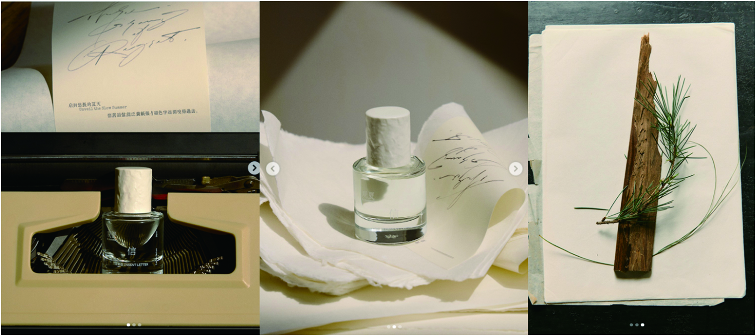 관시아의 여름 한정판 제품인 미기신(未寄信)은 ‘후회’의 감정을 향기로 만든 것이라고 한다. 아무도 맡아본 적 없는 ‘후회’의 향기를 바로 이거라고 장담하니, 벌거벗은 임금님의 보이지 않는 옷을 보는 듯한 기분이 든다. 하지만 소비자들의 반응은 뜨거워서 미기신은 2024년 출시하고 오래지 않아 품절되었다고 한다. 다음은 품절되었던 미기신을 올해 다시 출시하면서 소비자들에게 공개한 미기신의 ‘편지’다.