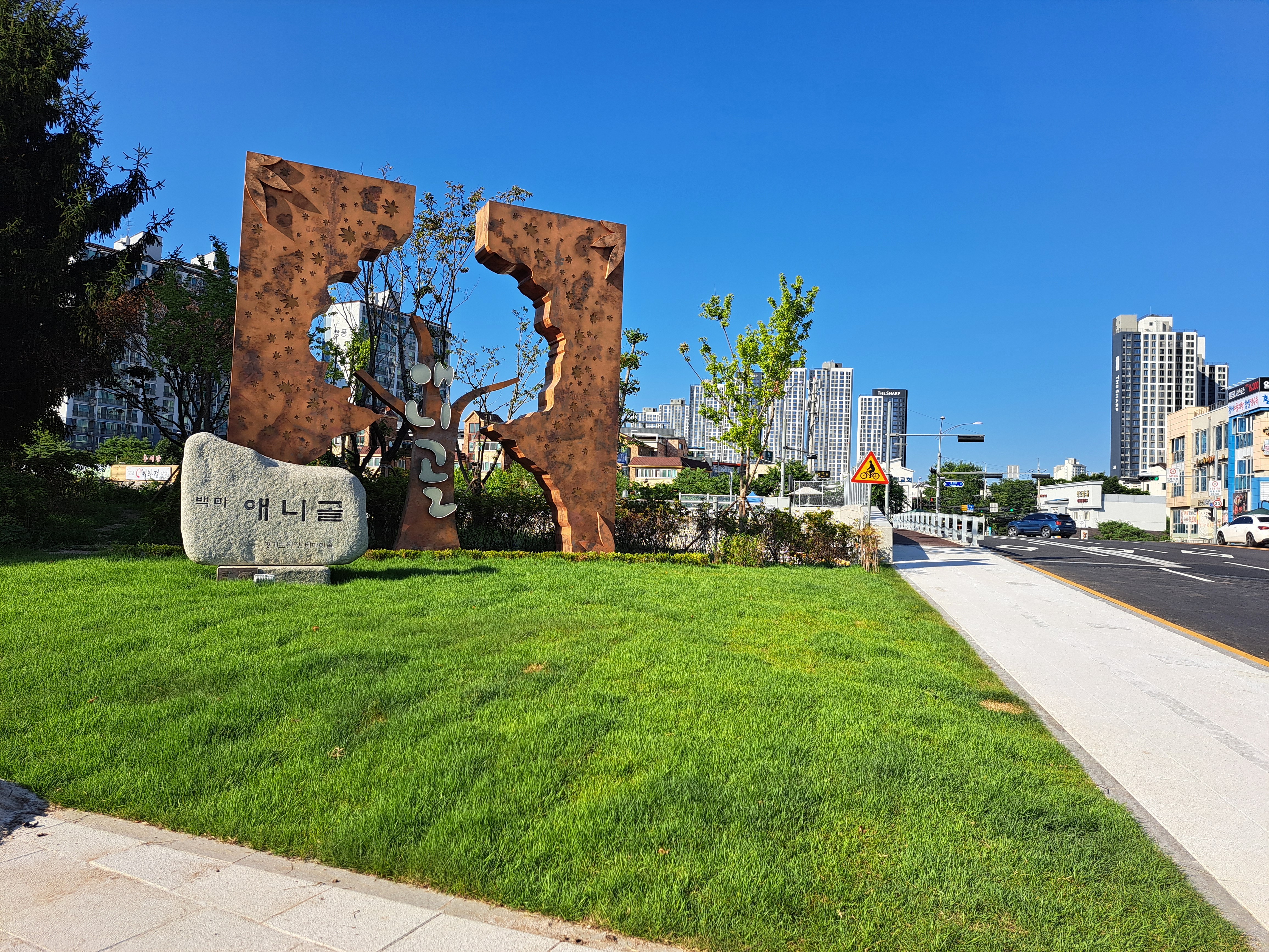 주변을 둘러싼 아파트에 애니골이 섬처럼 갇혀버린다. 새로 난 도로를 따라 오르기 시작한 땅값은, 애니골을 감성 충만한 공간으로 남겨둘 하등의 여유를 두지 않았다. 곳곳에 대형 음식점이 자리한다. 개울 건너편이 빌라촌으로 바뀌기 시작한다. 치솟은 땅값은 애니골이 일궈낸 격과 서정을 지워내기에 차고도 넘쳤다. 은은한 통기타 소리 울려 퍼지던 카페가 설 자리를 잃어갔다. 각종 음식점과 그저 그런 상업시설이 파도처럼 밀려들었다.
