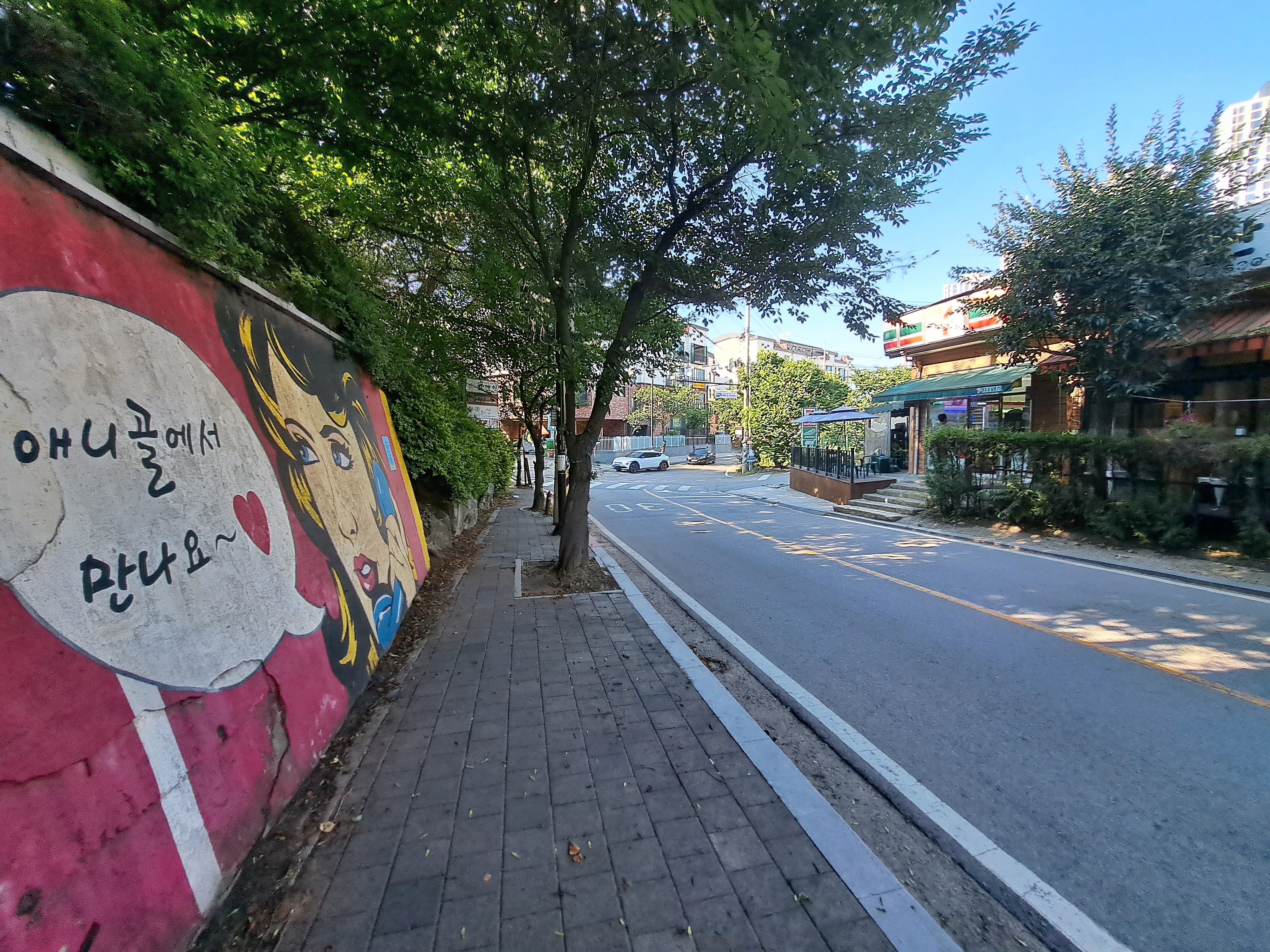 개울 따라 2차선이 구불구불 흐르고, 도로에서 가지처럼 뻗은 작은 골목들이 숨은그림찾기를 하고 있었다. 곳곳에 맞춤한 숲이 우거지고, 한가운데 자리 잡은 YMCA를 중심으로 실핏줄처럼 구석구석 아늑한 분위기의 카페와 특색 있는 음식점을 숨기고 있었다. 이로 인해 공간은 한층 높은 격과 분위기를 선사했다.