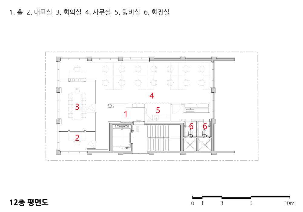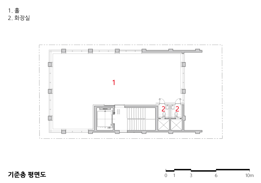 건축주의 요구는 심플했다. “10층 이상이면 좋고, 사옥이나 임대 용도로 괜찮은 땅인가요?” 이 정도였다. 주변은 연속적으로 이어진 고층 건물들이 형성하고 있었고, 그 사이에서 우리 건물을 어떻게 드러낼지 고민이 필요했다.