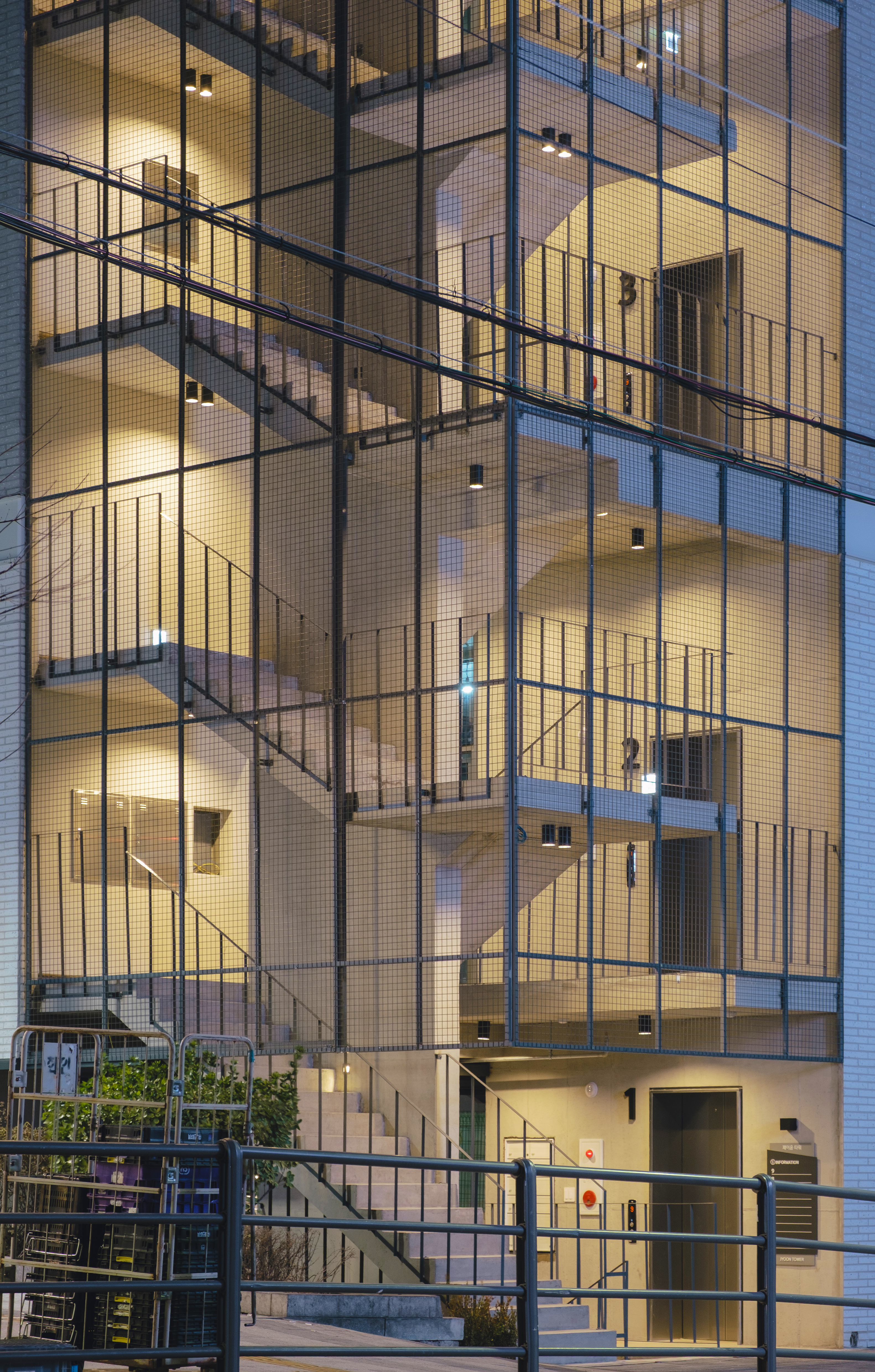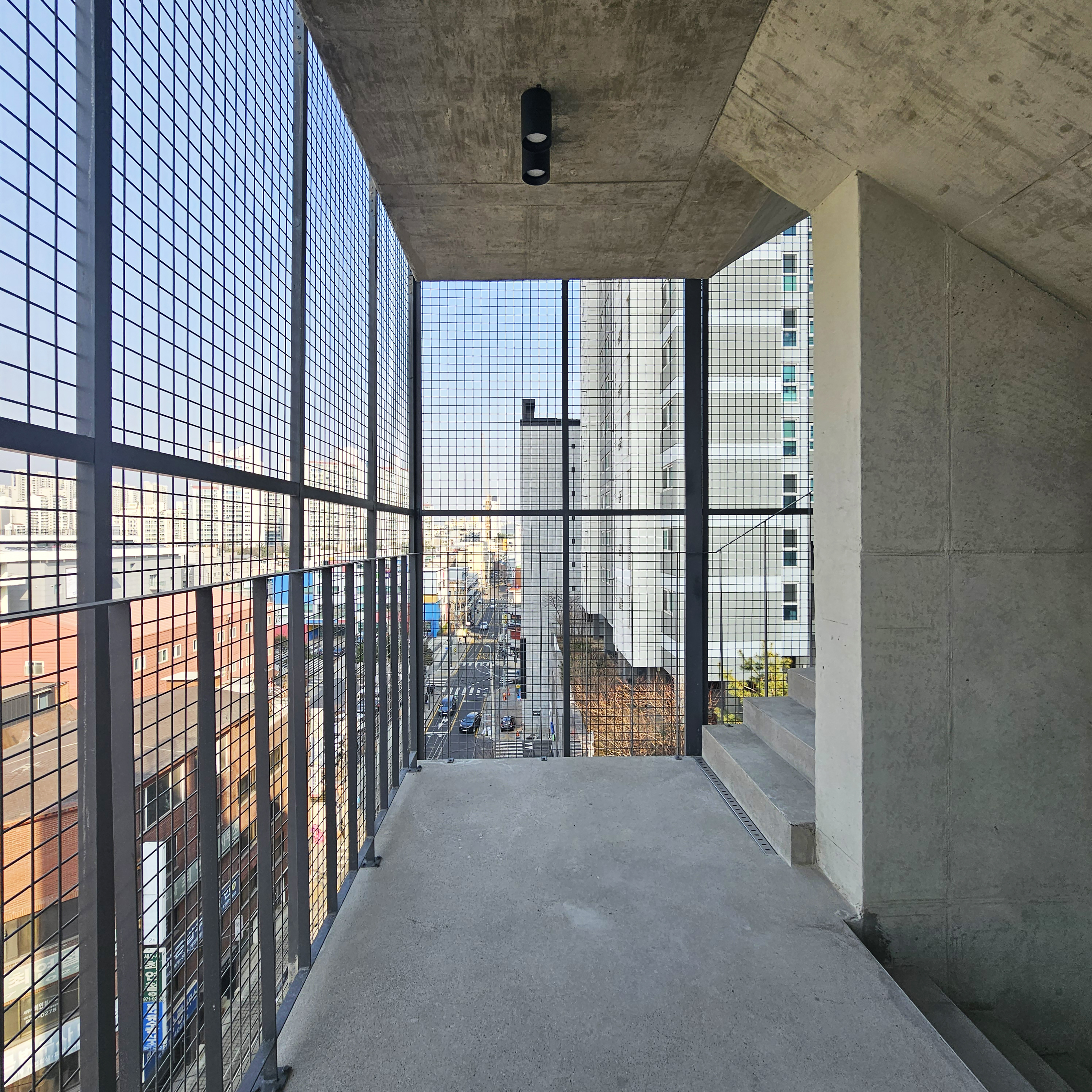 메쉬 구조로 감싼 외부 계단과 복도는 투과성과 노출의 정도를 조절하며, 사람들의 움직임을 도시로 드러낸다. 이는 보행자의 시선을 유도하고 관심을 끄는 방식으로 상업적 성격을 드러내며, 도시의 맥락에 반응해 건축의 형태로 자리 잡고 장소에 활력을 불어넣는다.