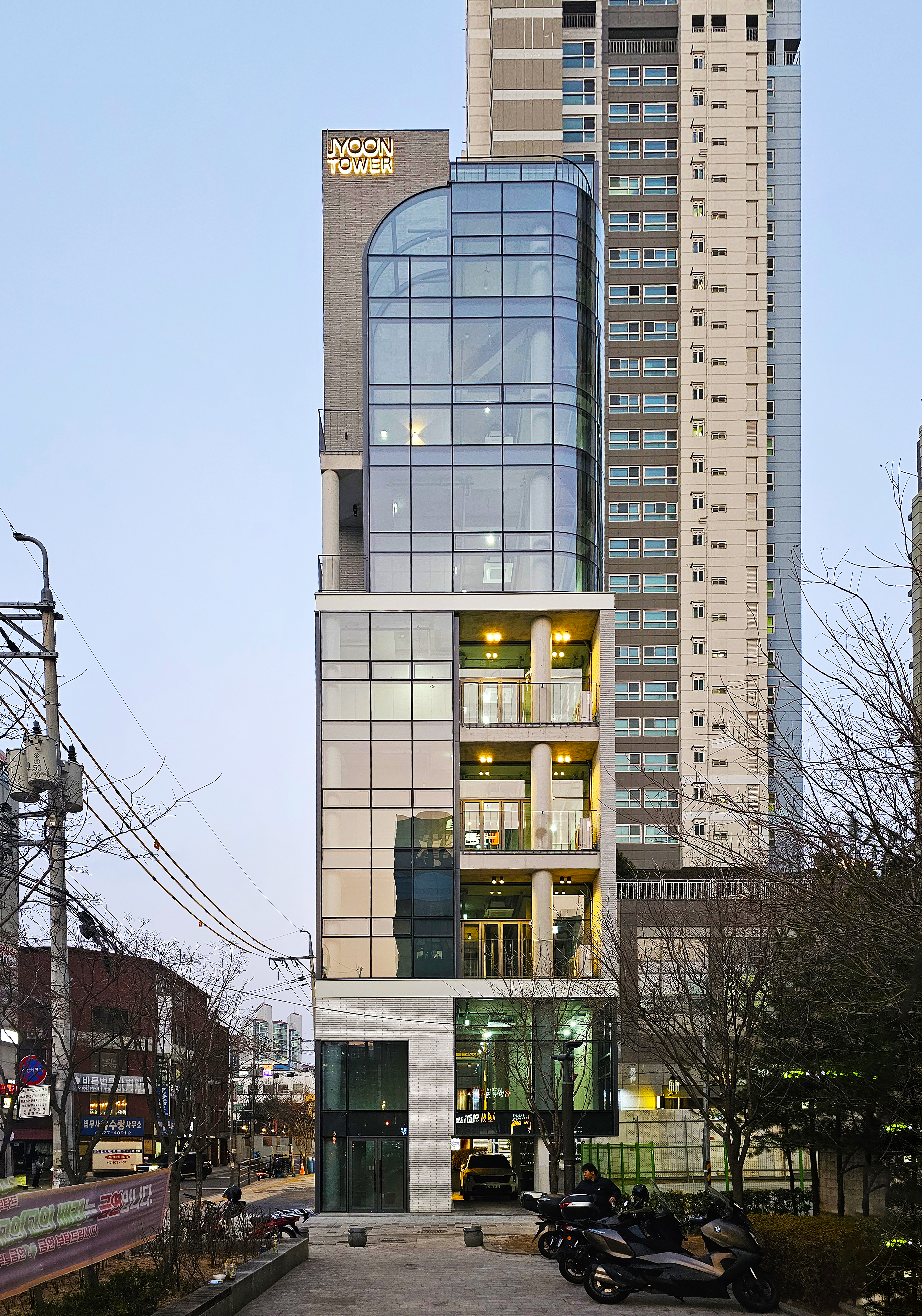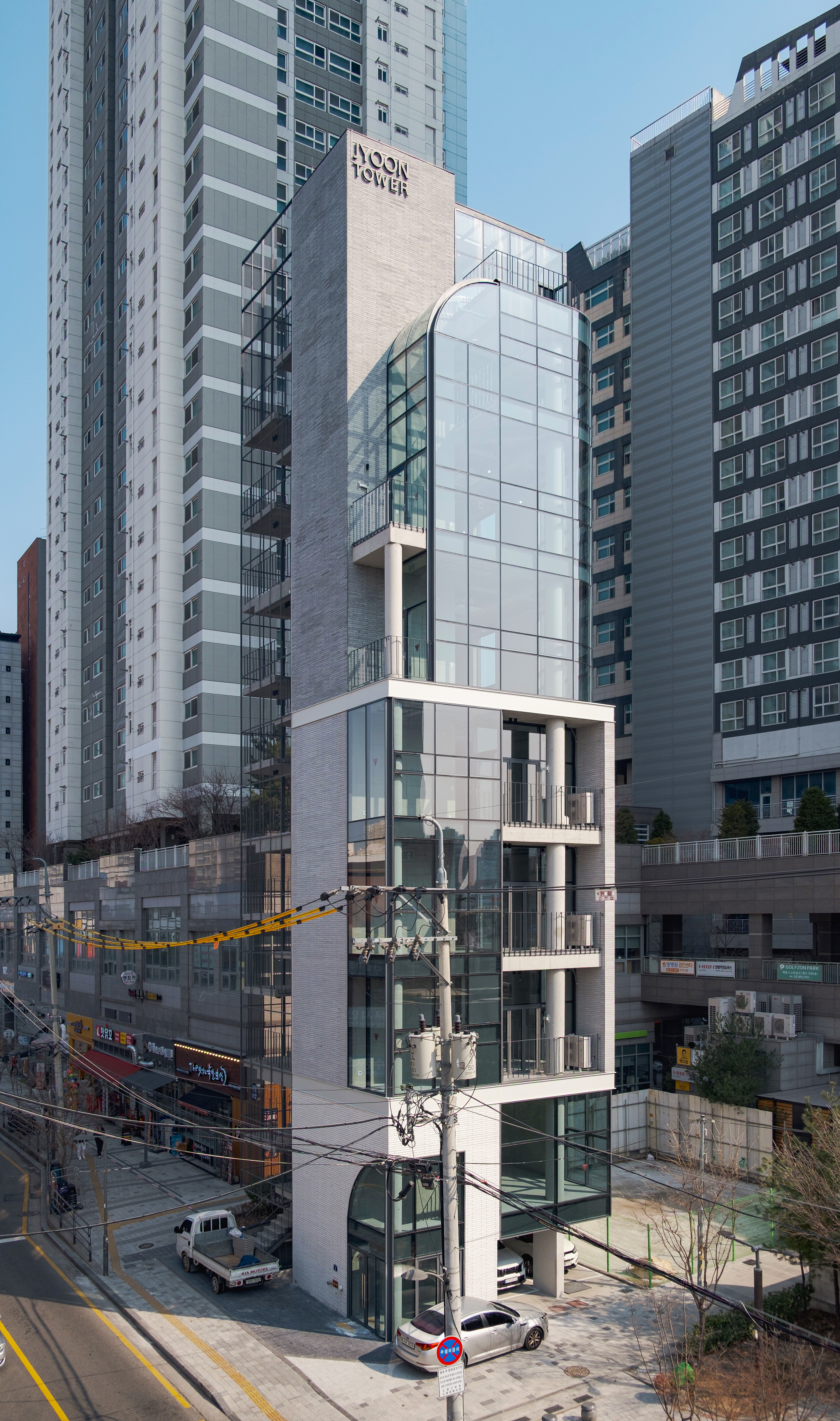 대상지는 벽돌 건물, 전선, 전봇대 등 다양한 도시 요소들이 뒤엉킨 환경에 위치하며, 인접 부지에는 수직적으로 솟은 고층 건물이 자리하고 있다. 이러한 맥락에서 건축은 조형적으로 두드러지기보다, 도시 경관을 있는 그대로 수용하고 조율하는 방식으로 접근했다.