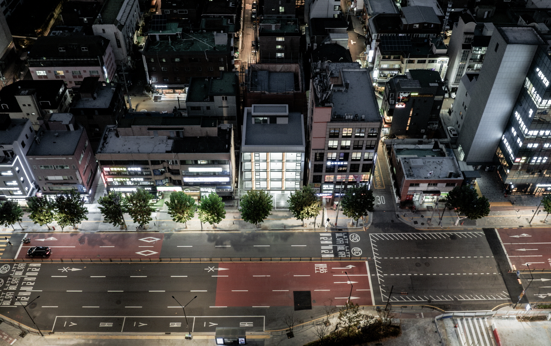 평범한 평일 오후 개포동에 위치한 BLUE CUBE 앞 거리는 유독 더 활기찬 모습이었다. 거리에서 한 개 층 들어올려진 입방체 볼륨은 그 조형적인 단순함 덕에 이웃한 건물들과 비교되는 현대적인 경쾌함을 갖고 있었고, 세심하게 조정된 비례를 갖고 있는 ‘넓고 높은 창’을 통해 ‘이웃의 생활상(近隣生活)’을 도시로 투영하고 있었다. 건물의 무게감을 의도적으로 지우려는 듯, 반복되는 창호가 만들어내는 격자형 입면을 따라 계획된 가볍고 세장한 현대판 코니스(Cornice)들이 만들어나가는 기하학적 질서와 양감을 쫓아가다 보면, 지속적으로 변화하게 될 임대공간 프로그램 자체가 건축과 도시의 입면을 자연스럽게 만들어 갈 것이라는 현대 도시건축 해법에 흔쾌히 동의할 수 있었다.