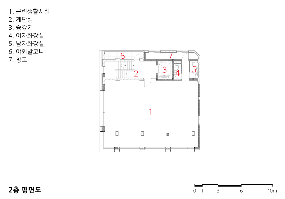 30여 년의 시간을 거치며, 노후화 된 건축·구조·설비·전기 부분들을 갱신해 구조적, 기능적, 심미적으로 진일보시키는 프로젝트이다. 근린생활시설에서 가장 중요한 가치인 수직동선의 효율성 확보(엘리베이터 신설, 계단의 재구성)와 내부공간의 대공간화, 외피의 재구성을 통해, 프로그램들의 가치를 극대화시키기 위한 공간 구성의 구축이 계획의 중요한 목표였다.
