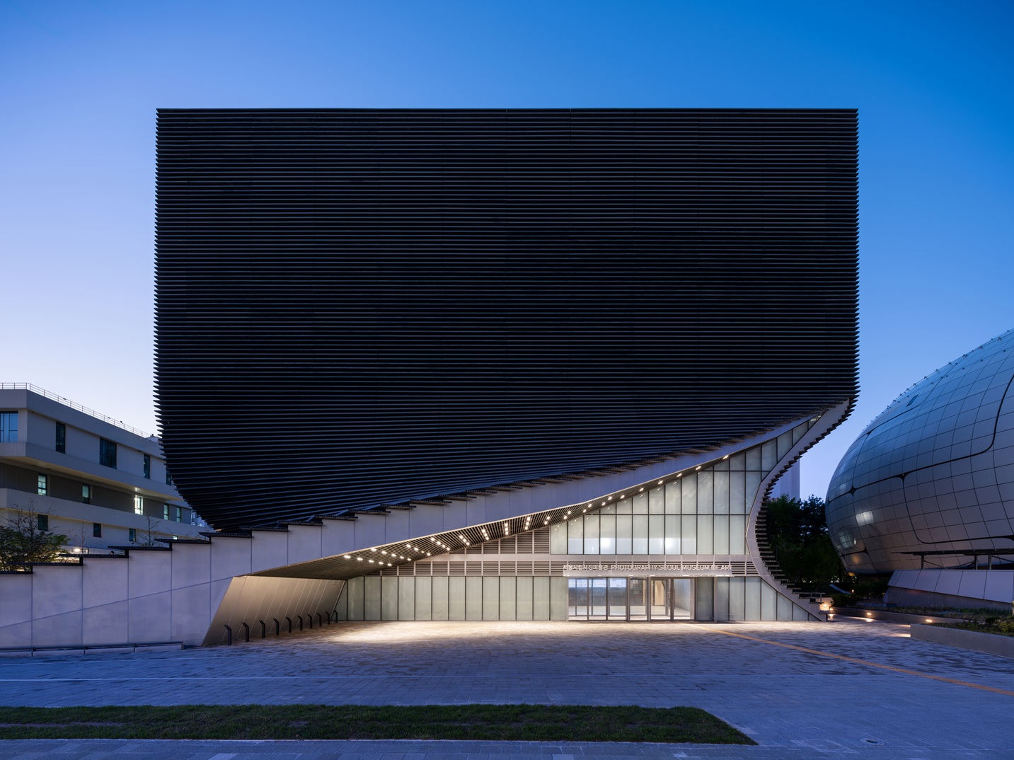 디자인 측면에서는 순간을 포착하는 형태와 관람객을 환영하는 듯한 제스처를 동시에 전달하고 싶었습니다. 마치 쌓아둔 카드를 비틀어 회전시킨 것처럼 보이는 디자인으로 선이 연속돼 면과 볼륨으로 인식되는 디자인으로 이를 표현했습니다. 실시설계 과정에서 구조 등 여러 여건을 반영해 현재의 모습으로 일부 수정됐습니다. 공모안보다 입구가 더 넓어지고 구조적 안정성도 갖추면서도 다이내믹한 형태를 유지한 발전대안이라고 할 수 있습니다. 특히 1-2층이 휘어진 벽의 형태가 내부 공간을 보다 특별하게 만들어 낸다고 생각합니다. 실제로 공간을 본 사진작가들이 흥미로워하더라고요. 저희는 건축이 예술적 촉매제가 될 수 있다고 보거든요. 여전히 건축이 모든 예술 매체를 선도할 수 있다고 믿고 있습니다.”