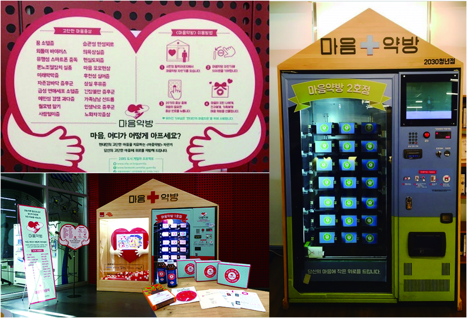 이 20개의 마음 증상은 2015년 2월부터 5년 동안 서울시청 지하 활짝 라운지에 설치되었던 ‘마음약방’이라는 자판기에 나열된 것들이다. 자판기에는 20가지 증상에 따른 처방 키트가 구비되어 있어서 동전 500원을 넣고 하나를 고르면 증상에 대한 처방전이 나온다. 어른 손바닥만 한 처방전 상자 안에는 시, 그림, 영화 등의 예술작품 추천 목록이나 테마 지도, 비타민제 등이 들어 있다.