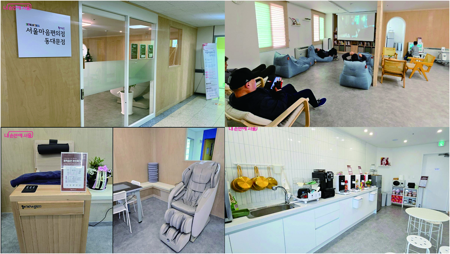 그 실천의 하나가 올해 3월 관악, 강북, 도봉, 동대문 네 군데 사회복지관에 문을 연 ‘서울마음편의점’이다. 서울마음편의점에 가면 누구나 외로움 자가 진단 체크리스트를 작성한 뒤 무료로 라면이나 햇반, 커피와 차를 마실 수 있다. 안마의자나 반신욕기, 족욕기를 사용할 수 있고 문화 활동, 동호회, 전문가 상담, 각종 소모임에 참여할 수도 있다.