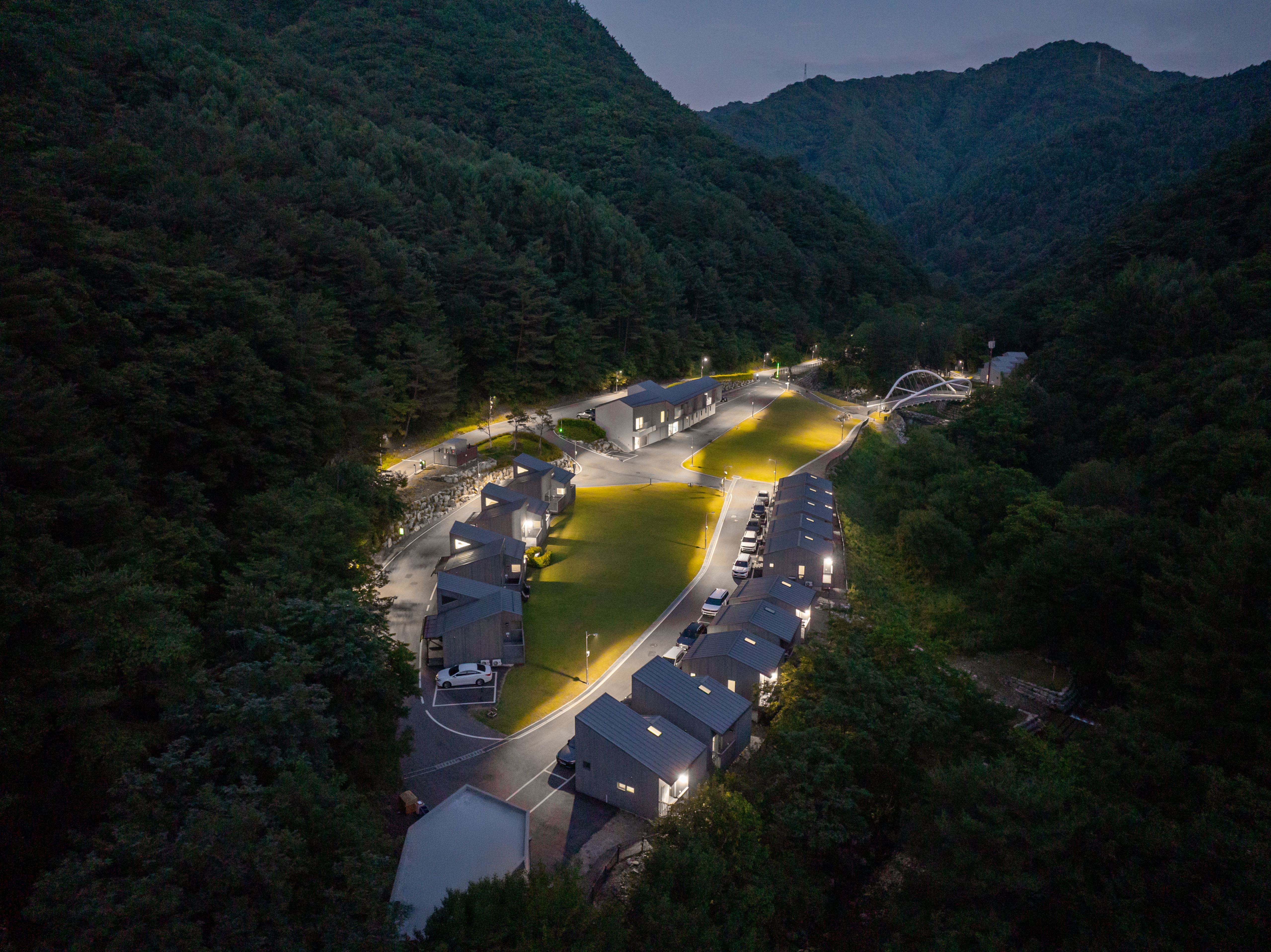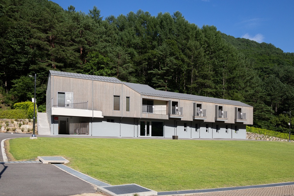 Gaetgol Natural Recreaton Forest Architect | Heo, Gilsoo_RealLab architects Choi Hansol · Joo Daekhan_Design Group Oz Architects Client | Inje-gun Supervisor | Hong Seokjin _ Yooduk Architects Construction | Jinsung ENG Co., Ltd. Project team | Lee, Jinhee / Kim, Jiyeong / Lee Sangyun Design intention realization | RealLab architects Location | Nambuk-ri, Inje-eup, Inje-gun, Gangwon-do Program | Forest recreation hall, Accommodation facilities, Camping facilities Site area | 14,611.00㎡ Building area | 1,461.37㎡ Gross floor area | 1,806.84㎡ Building to land ratio | 10.00% Floor area ratio | 12.37% Building scope | B1F–2F(Total 24 buildings), Pedestrian bridge Structure | Light timber structure + Medium timber structure, raised floor foundation (general steel structure), Steel structure (arched suspension bridge) with natural treated wood Exterior finishing | Charred wood siding (open joint) with eco-friendly oil stain, EIFS (ICEBERG 9205) Interior finishing | Walls: Eco-friendly paint + wallpaper (DID silk wallpaper) Floors: Plywood flooring (European Oak, Saw Oak) Design period | Apr. 2020 - Aug. 2021 Construction period | Jun. 2021 – Sep. 2023 Photograph | Kim, Yongsoo Structural engineer | Sejin SCM Co., Ltd. Mechanical·Fire engineer | Beomchang Engineering Co., Ltd. Electrical engineer | Narae D&A Co., Ltd. Civil Engineering | Geonchang E&Tech, Seongu Engineering Landscape Architecture | Atelier Namu |