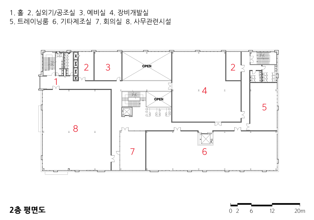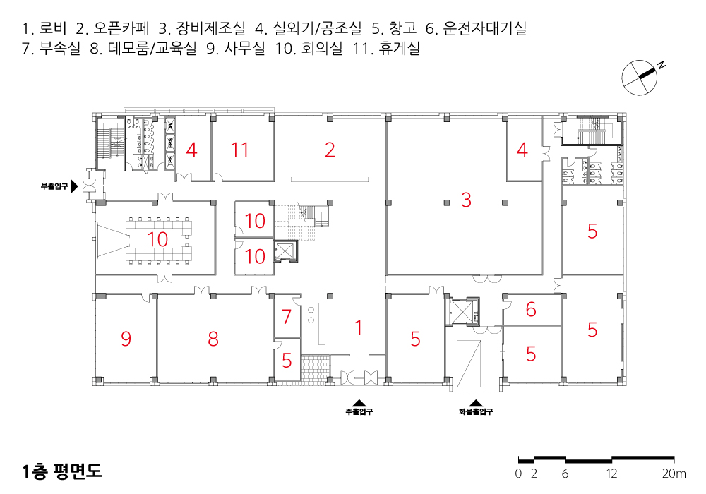 공유 오피스를 중심으로 각 층은 자연스럽게 연결된다. 각 층은 고유한 프로그램을 갖지만 느슨한 경계를 통해 서로 유기적으로 연결되며, 시각적·물리적 결합을 통해 다양한 활동을 유도한다. 생산과 사무, 공유와 개별성은 더 이상 이분법적 개념이 아니다. 오히려 각각이 서로를 확장시키는 유기적 관계로 재정립된다.