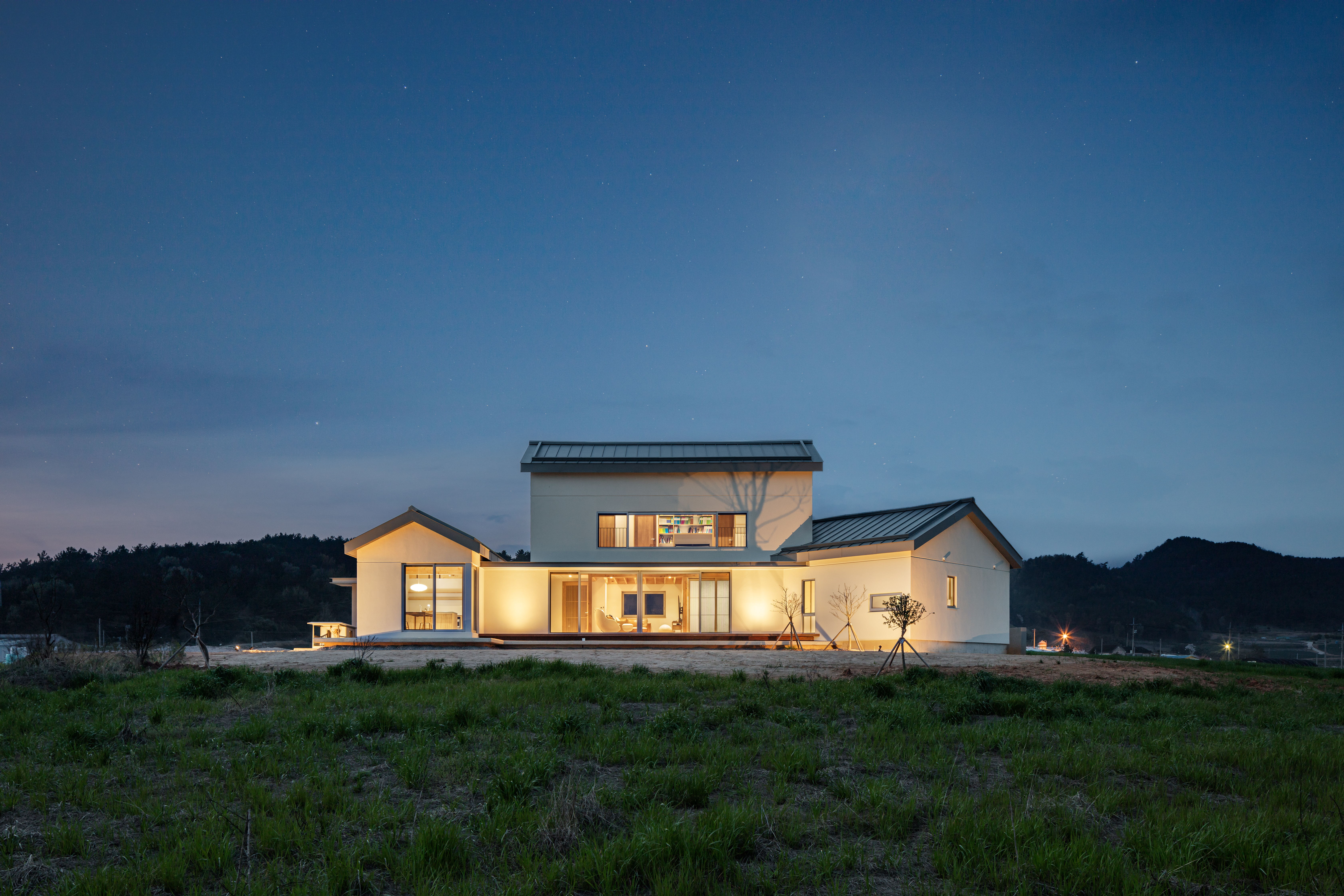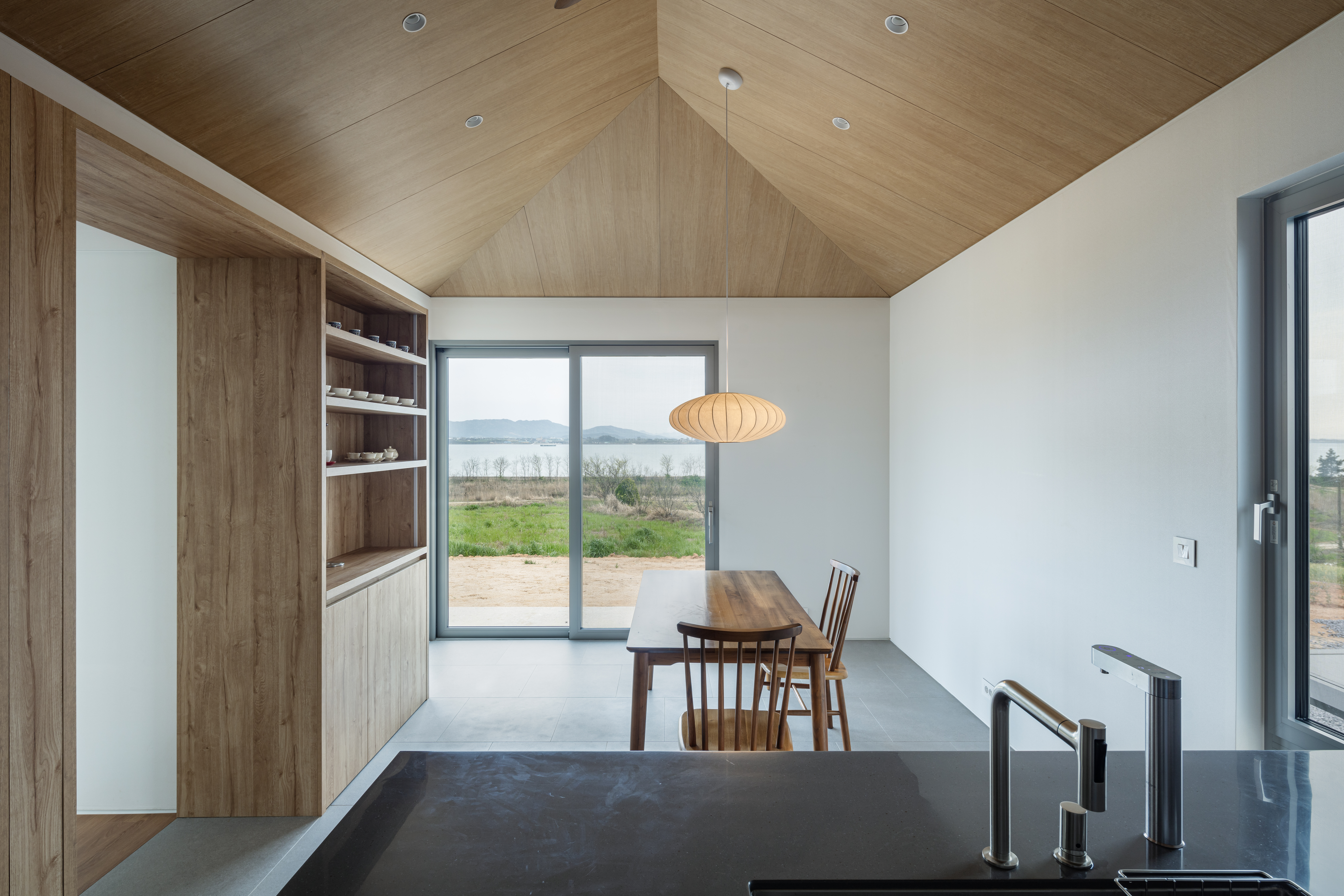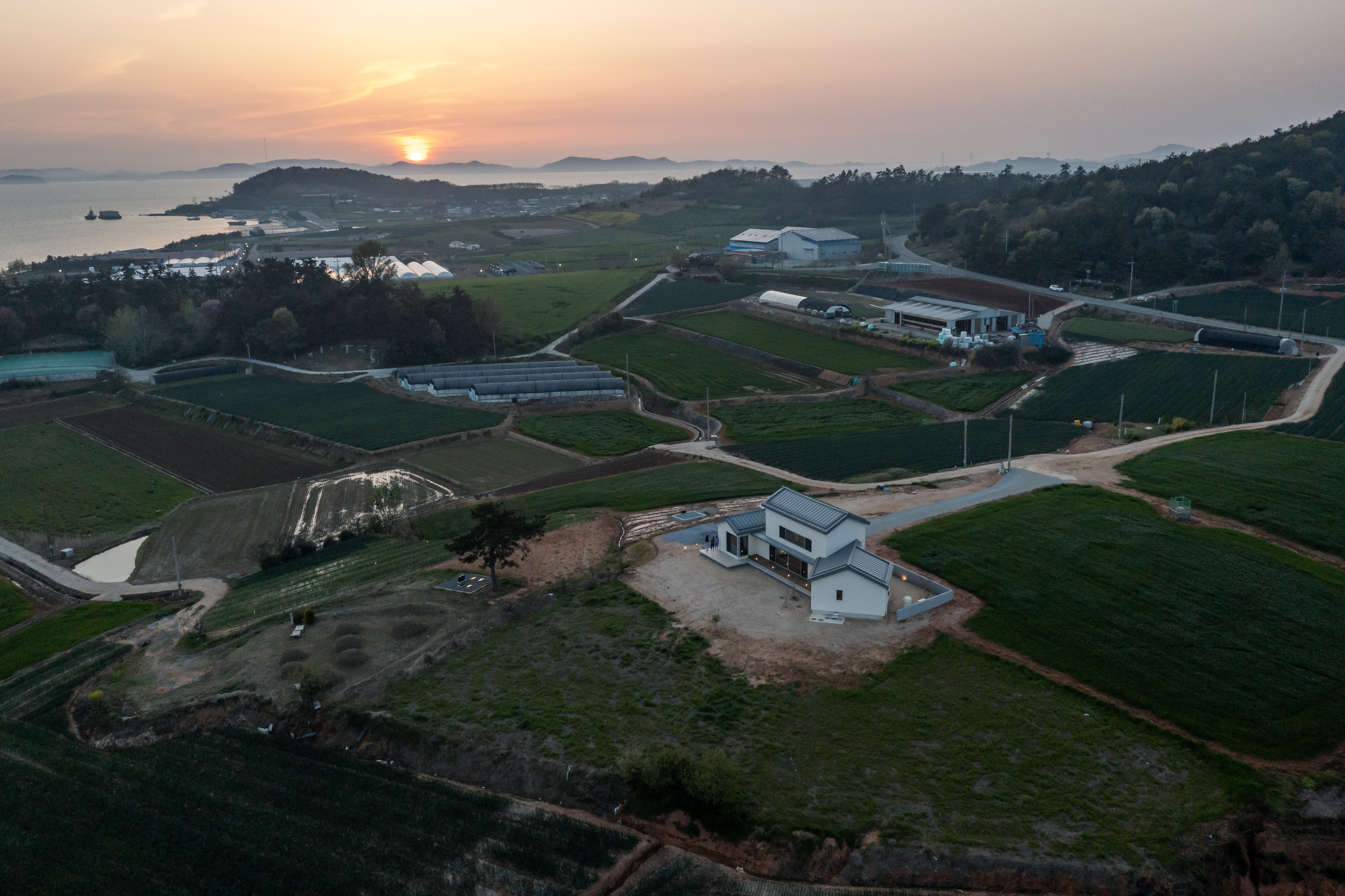Hampeong Sea Village House Architect | Shin, Gina _ SINTIM Architecture Client | Nam, Kesei / Lee, Minju Supervisor | Shin, Gina _ SINTIM Architecture Construction | Jung, Younghoon _ JS Construction Design intention realization | SINTIM Architecture Location | Seokchang-ri, Sonbul-myeon, Hampyeong-gun, Jeollanam-do Program | Detached House Site area | 610.00㎡ Building area | 121.50㎡ Gross floor area | 148.82㎡ Building to land ratio | 19.92% Floor area ratio | 24.40% Building scope | 2F Structure | RC, Light frame wood structure Exterior finishing | STO Exterior Insulation Finish System Interior finishing | Wood Film Floor, silk wallpaper, Tile Design period | Sep. 2022 - Jan. 2023 Construction period | May 2023 - Feb. 2024 Photograph | Chin Hyosook Structural engineer | Bov Frame Mechanical·Electrical engineer | Jungchan corporation |